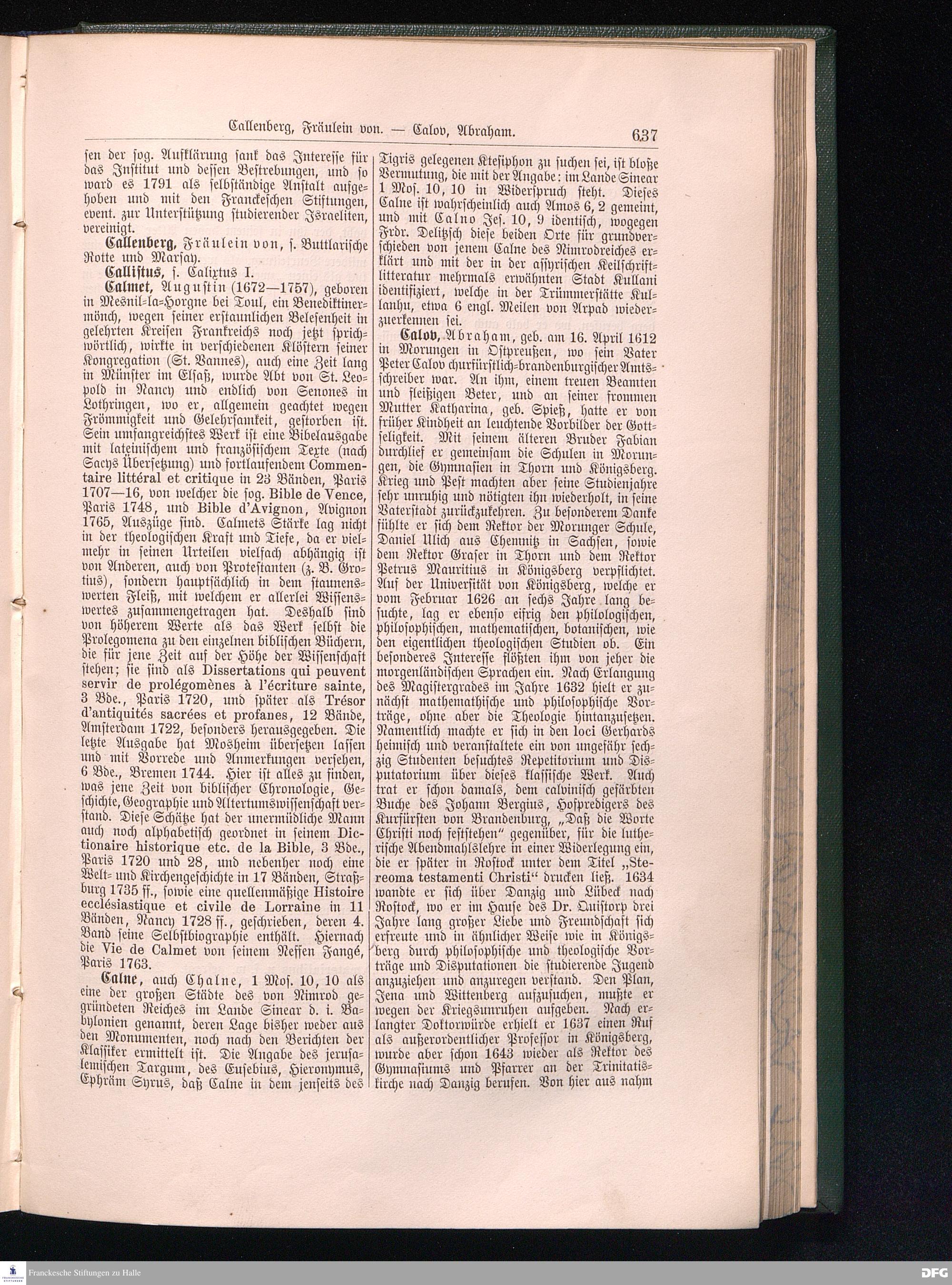 Art. "Callenberg, Johann Heinrich : geb. 12. 01. 1694, Molschleben, gest. 16. 07. 1760, Halle (Saale), Orientalist, Theologe".