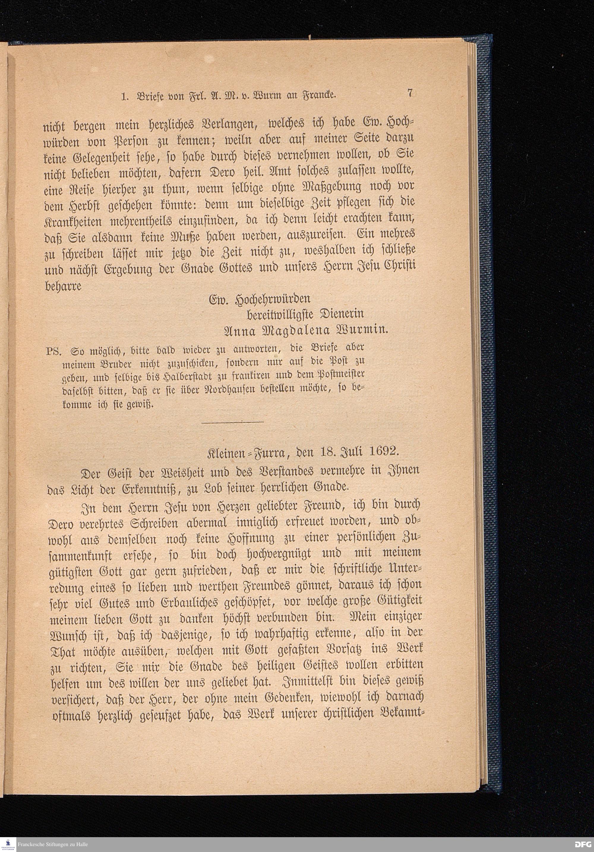 Briefe von Fäulein Anna Magdalena von Wurm an A. H. Francke.