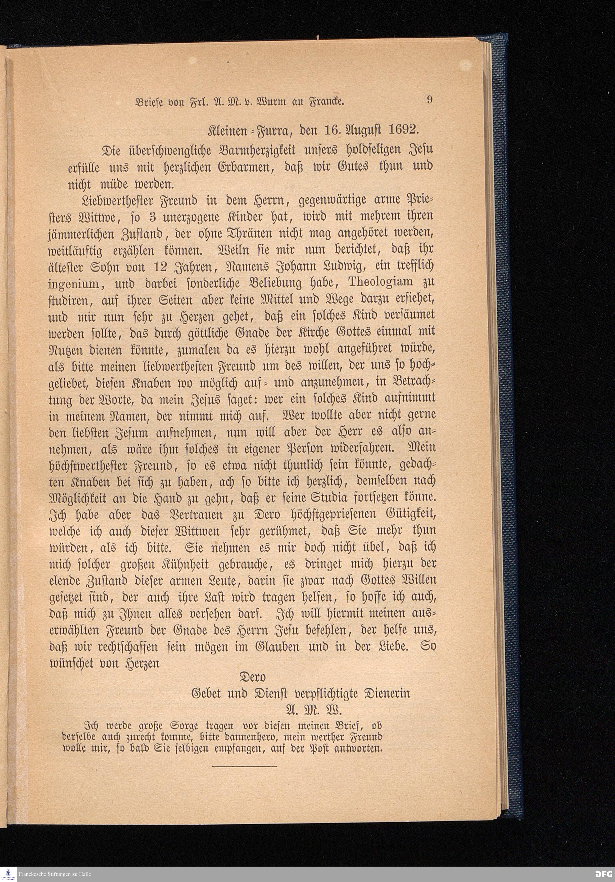 Briefe von Fäulein Anna Magdalena von Wurm an A. H. Francke.