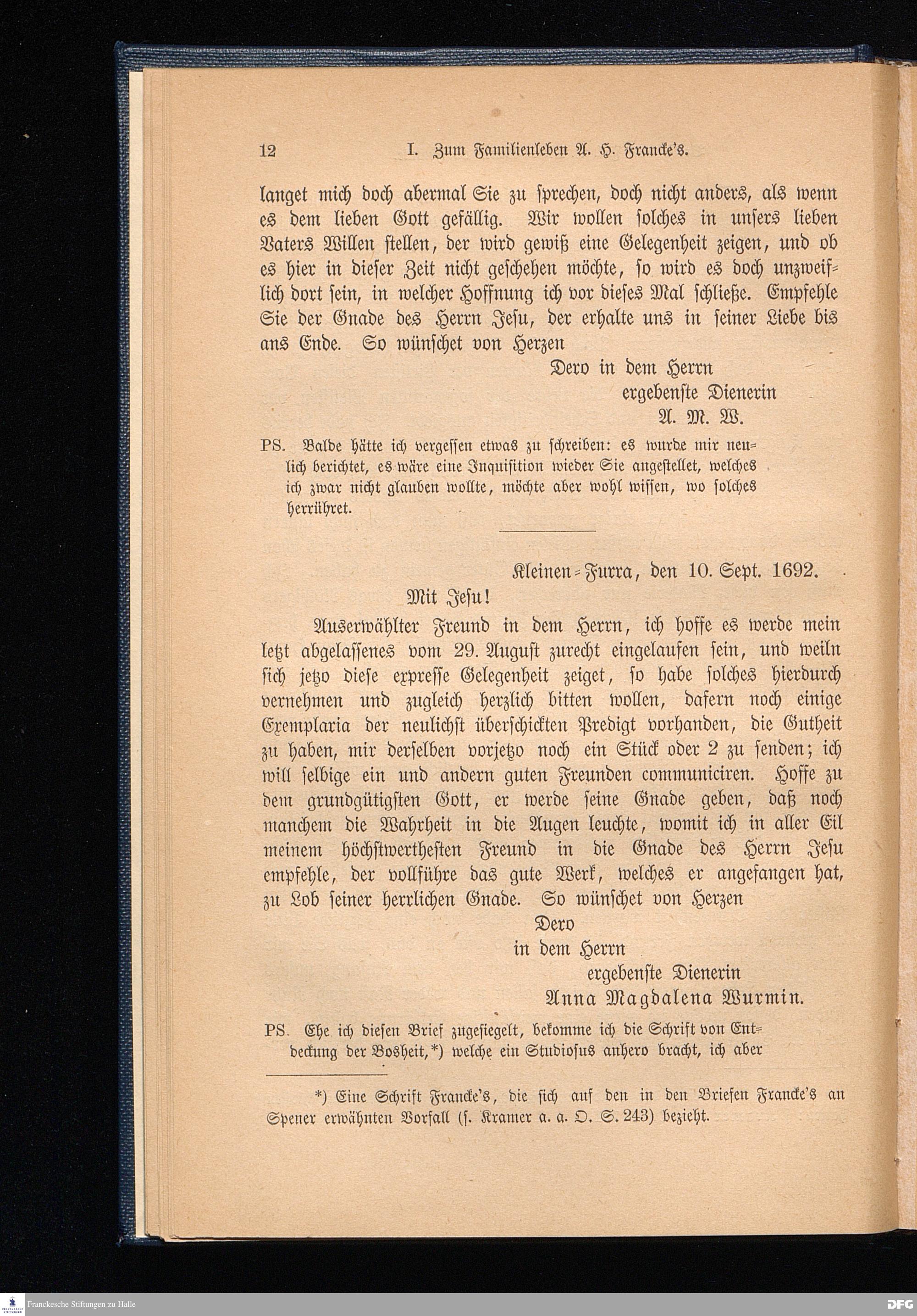 Briefe von Fäulein Anna Magdalena von Wurm an A. H. Francke.