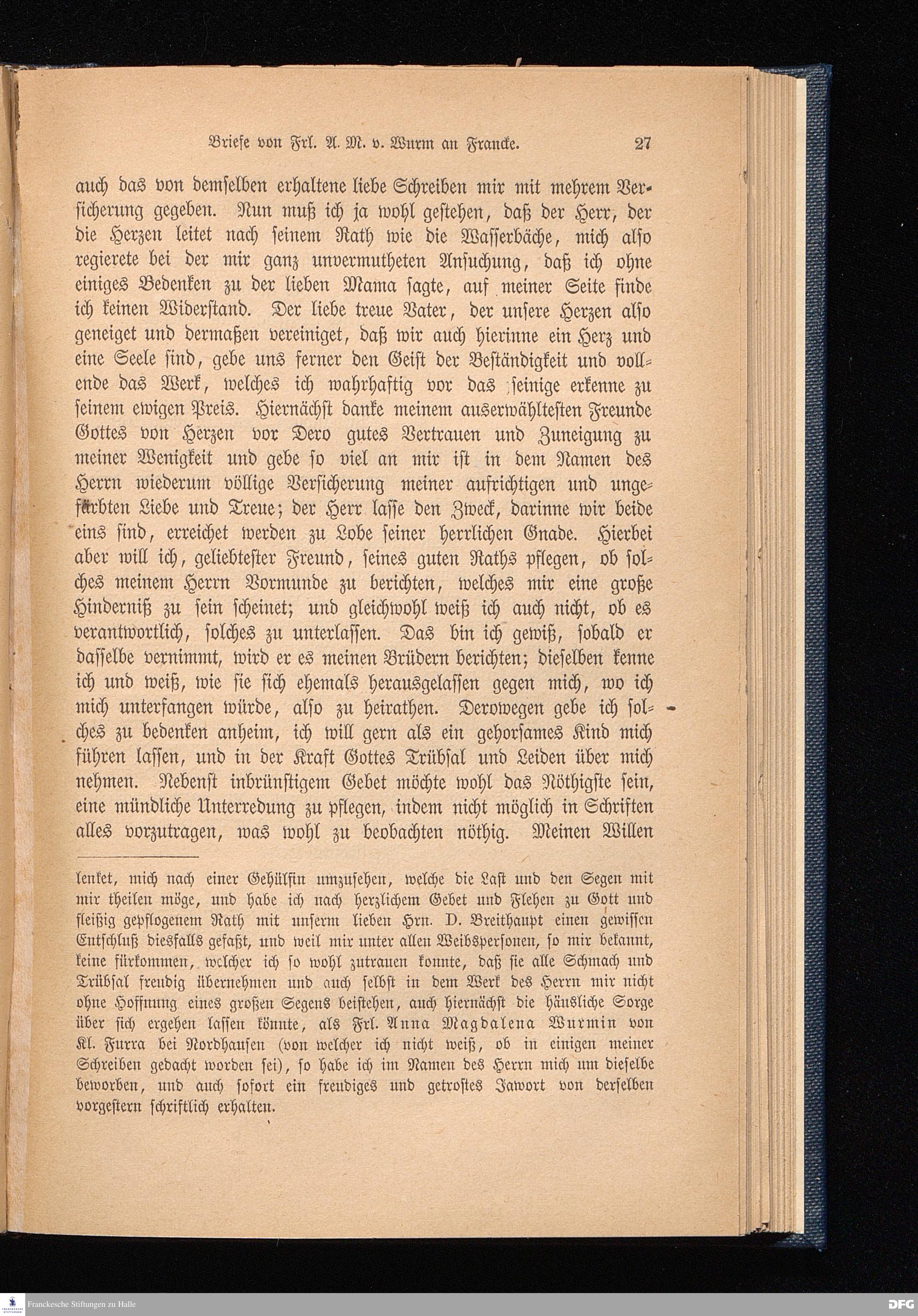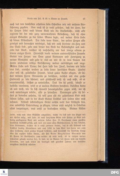 Briefe von Fäulein Anna Magdalena von Wurm an A. H. Francke.