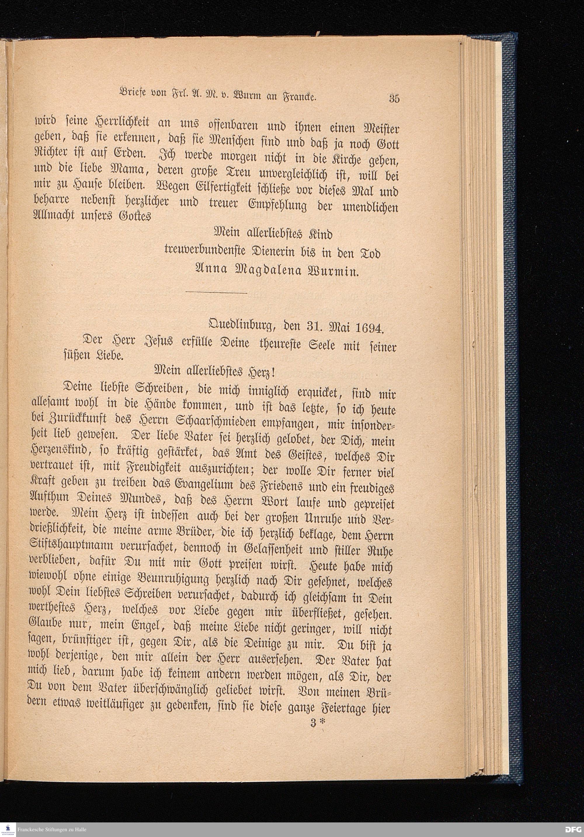 Briefe von Fäulein Anna Magdalena von Wurm an A. H. Francke.