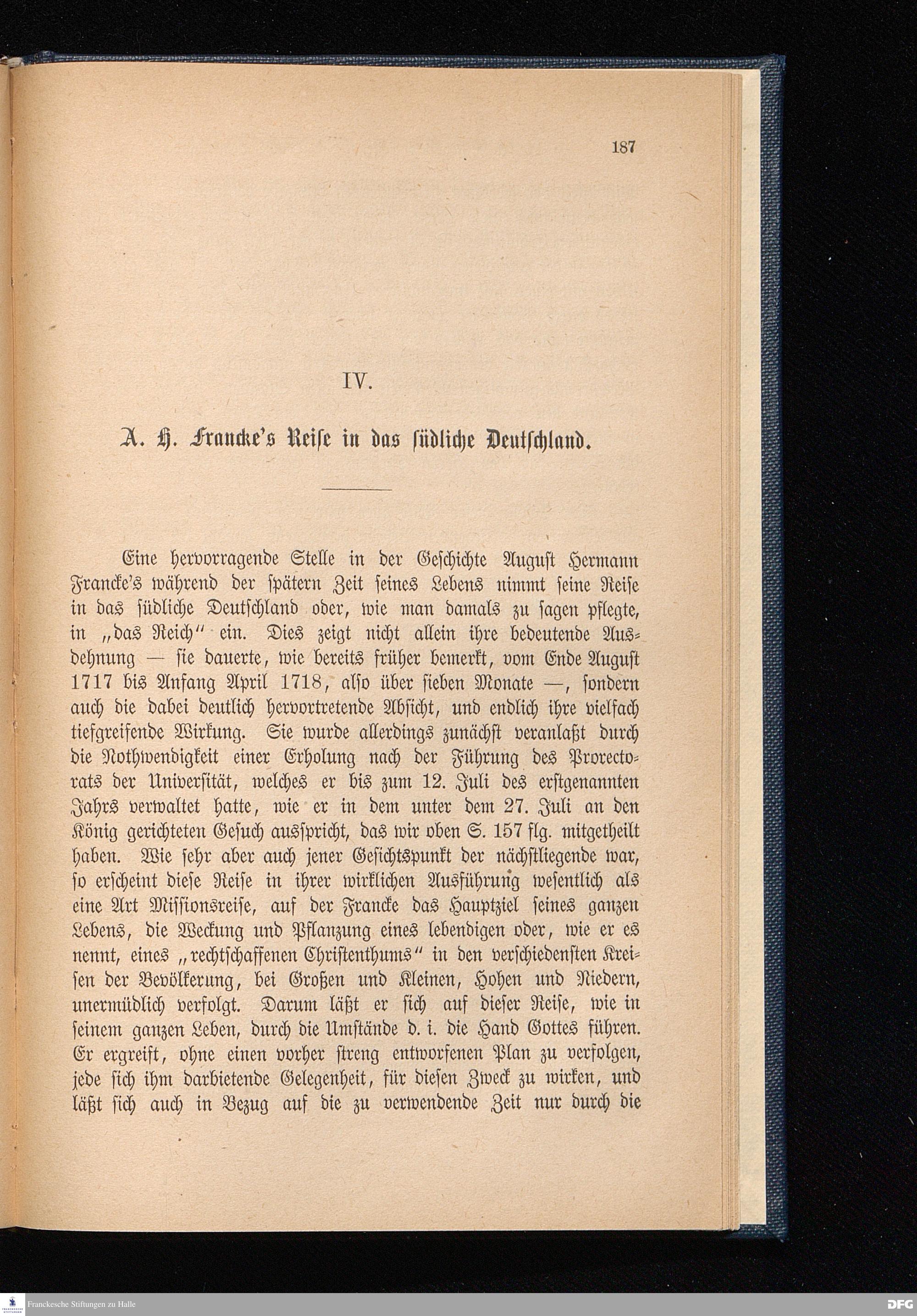 IV. A. H. Francke's Reise in das südliche Deutschland.