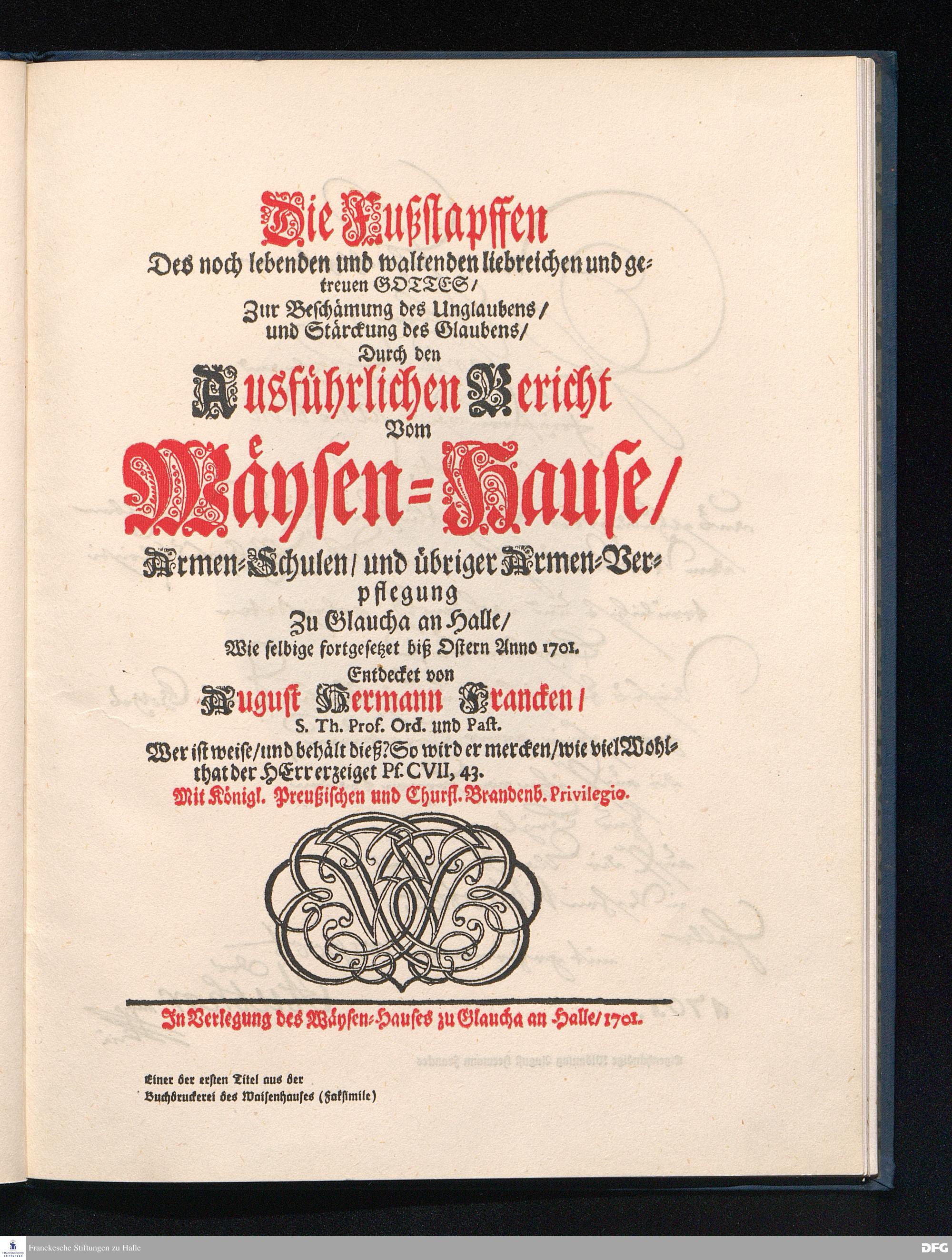 Einer der ersten Titel aus der Buchdruckerei des Waisenhauses (Faksimile)