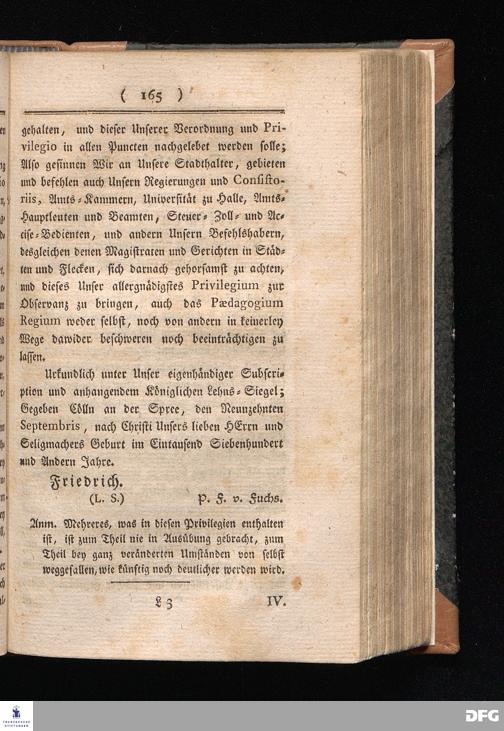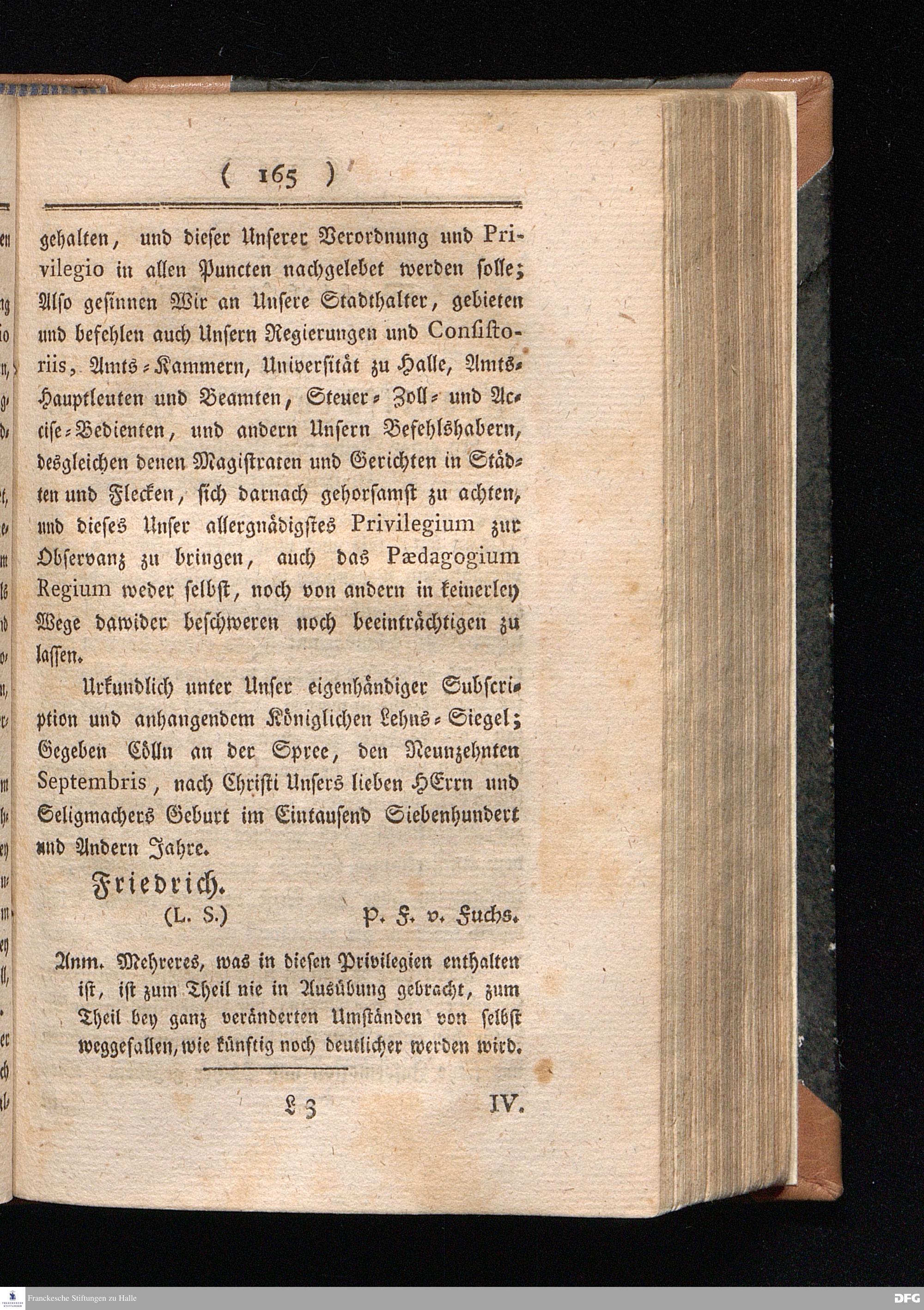 B. Privilegium des königl. Pädagogiums zu Glaucha an Halle.