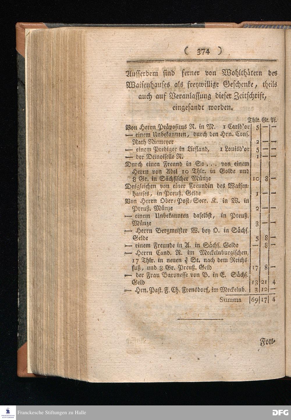 V. Fortsetzung des Verzeichnisses derer, welche für ein Exemplar der Zeitschrift...