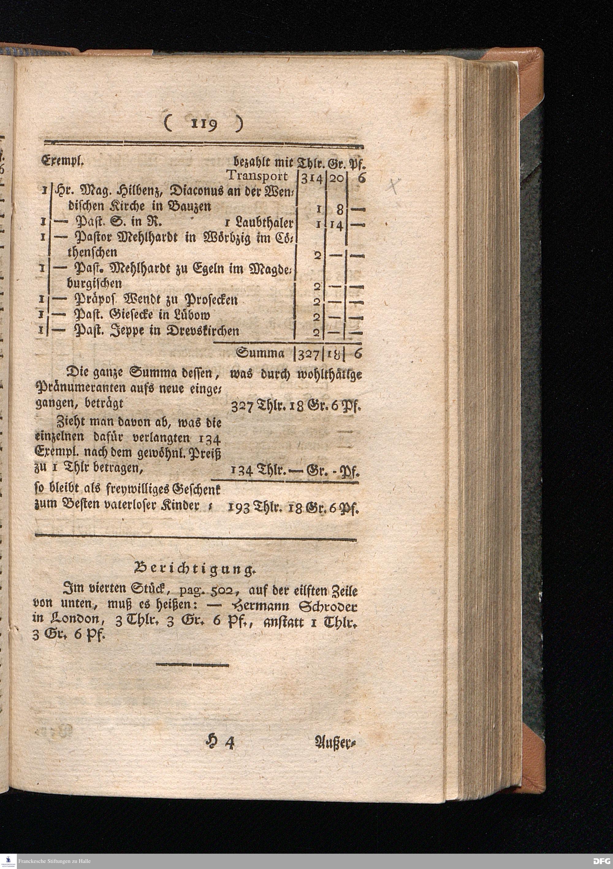 VII. Verzeichniß derer, welche für ein Exemplar der Zeitschrift mehr als 1 Thlr....