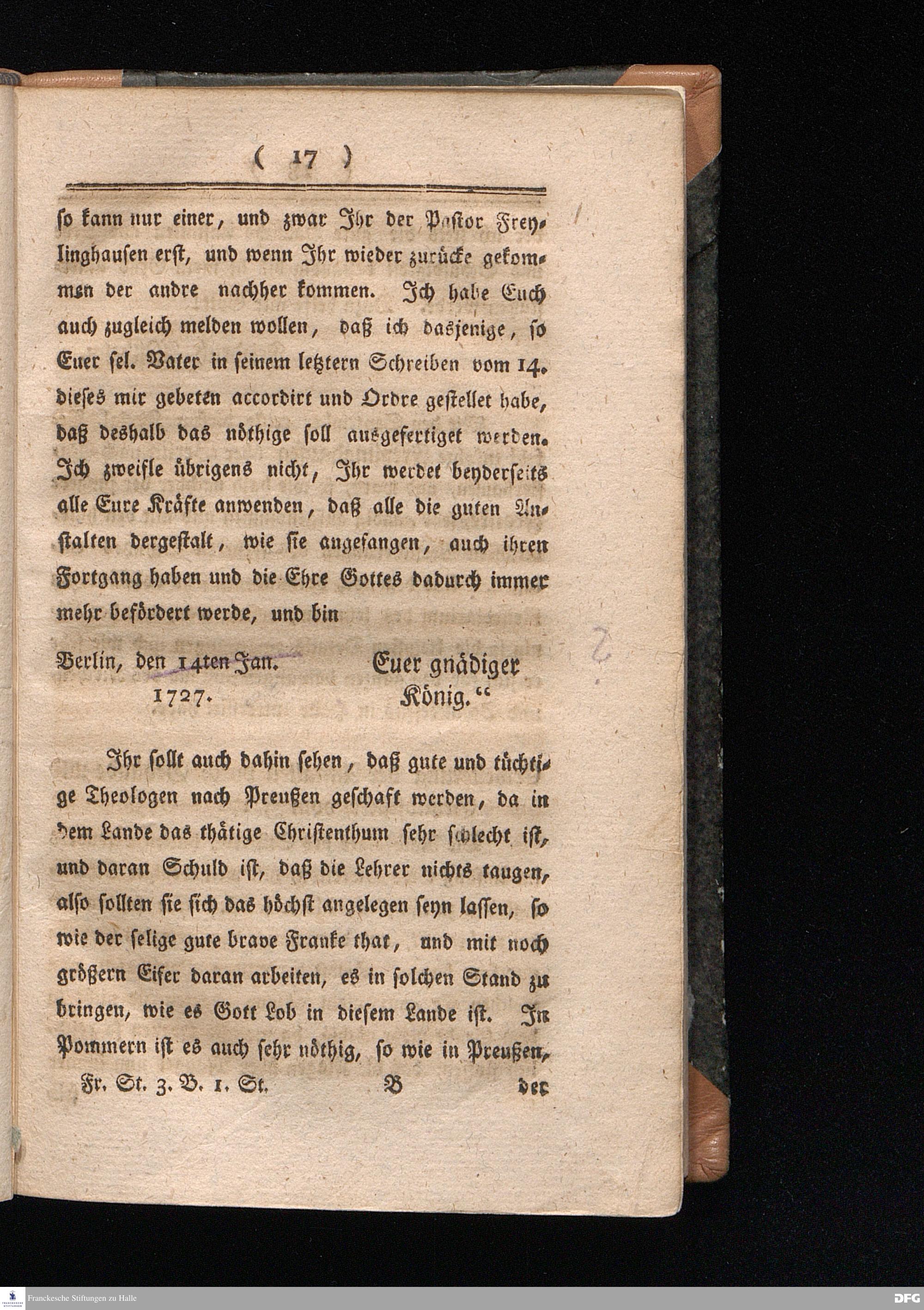 I. Fortgesetzte chronologische Uebersicht der Stiftungen August Herman Frankens,...