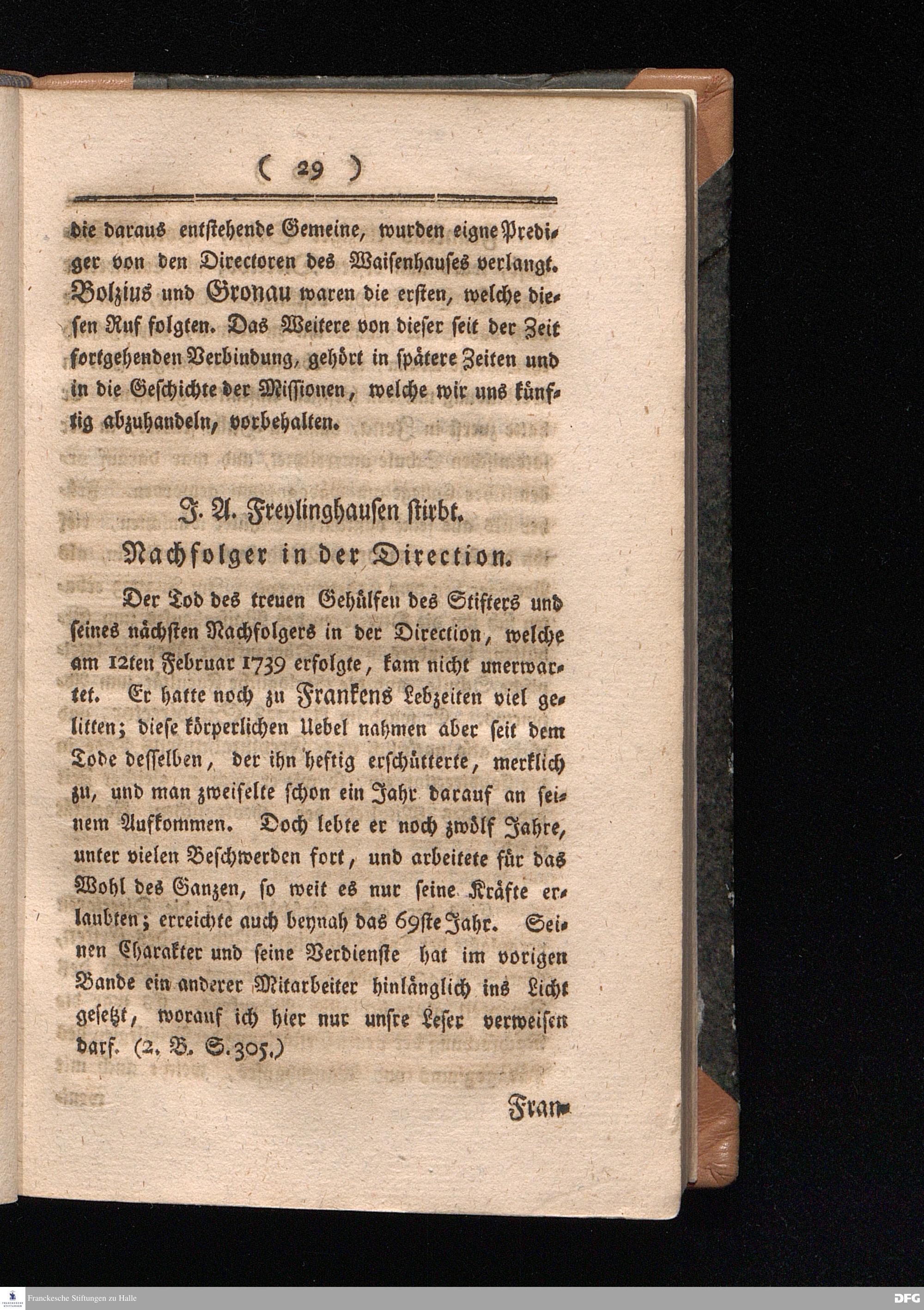 J. A. Freylinghausen stirbt. Nachfolger in der Direction.
