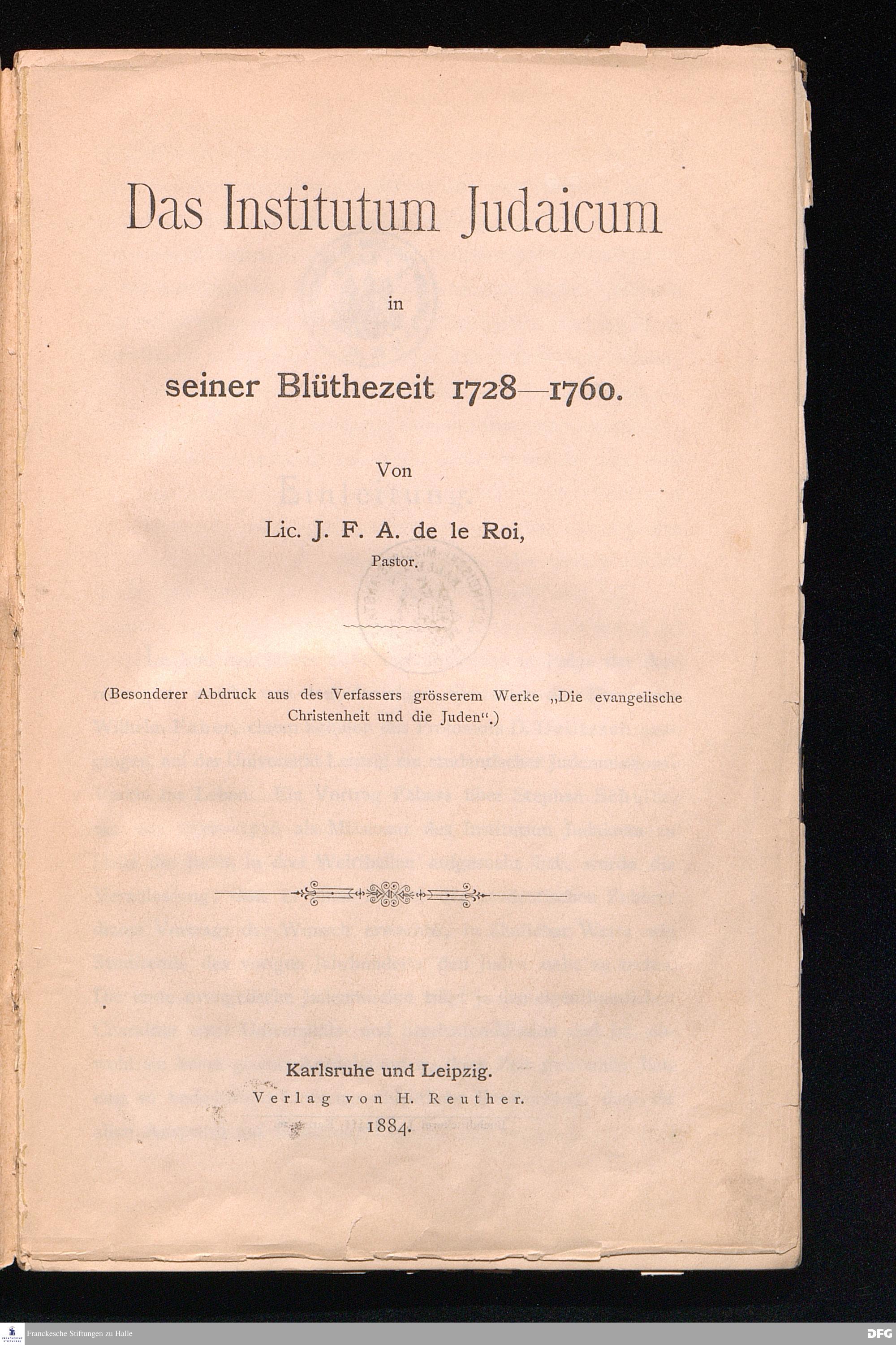 3. Die Anfänge des Institutum Judaicum.
