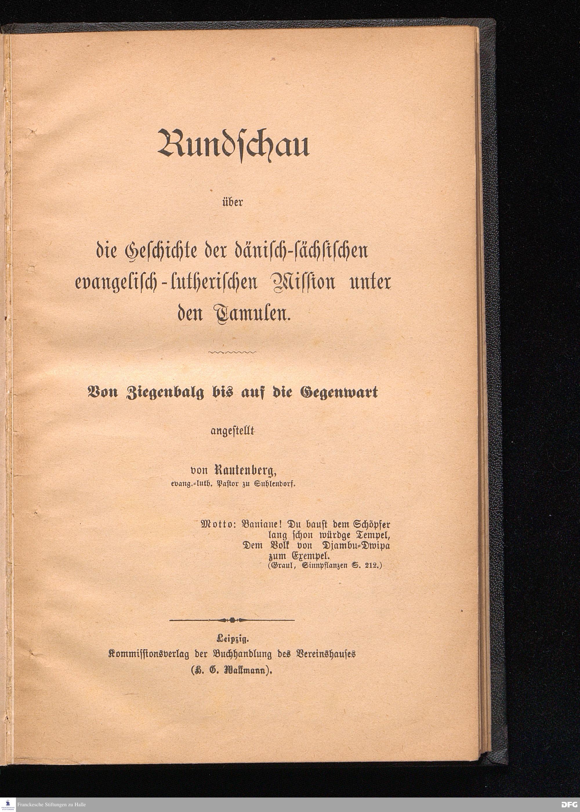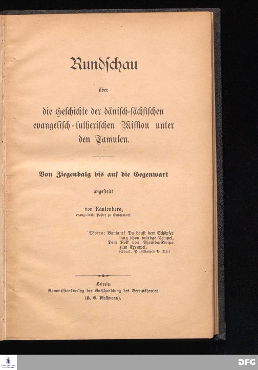 Rundschau über die Geschichte der dänisch-sächsischen evangelisch-lutherischen Mission unter den Tamulen. Von Ziegenbalg bis auf die Gegenwart.
