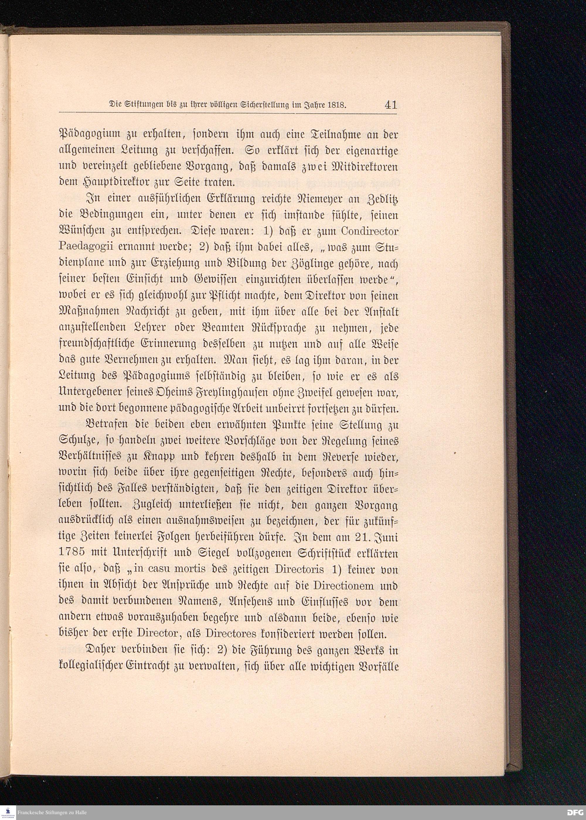Die Franckeschen Stiftungen in ihrem zweiten Jahrhundert. Mit einem Bildnis A. H. Niemeyers und einem Plane der Stiftungen.