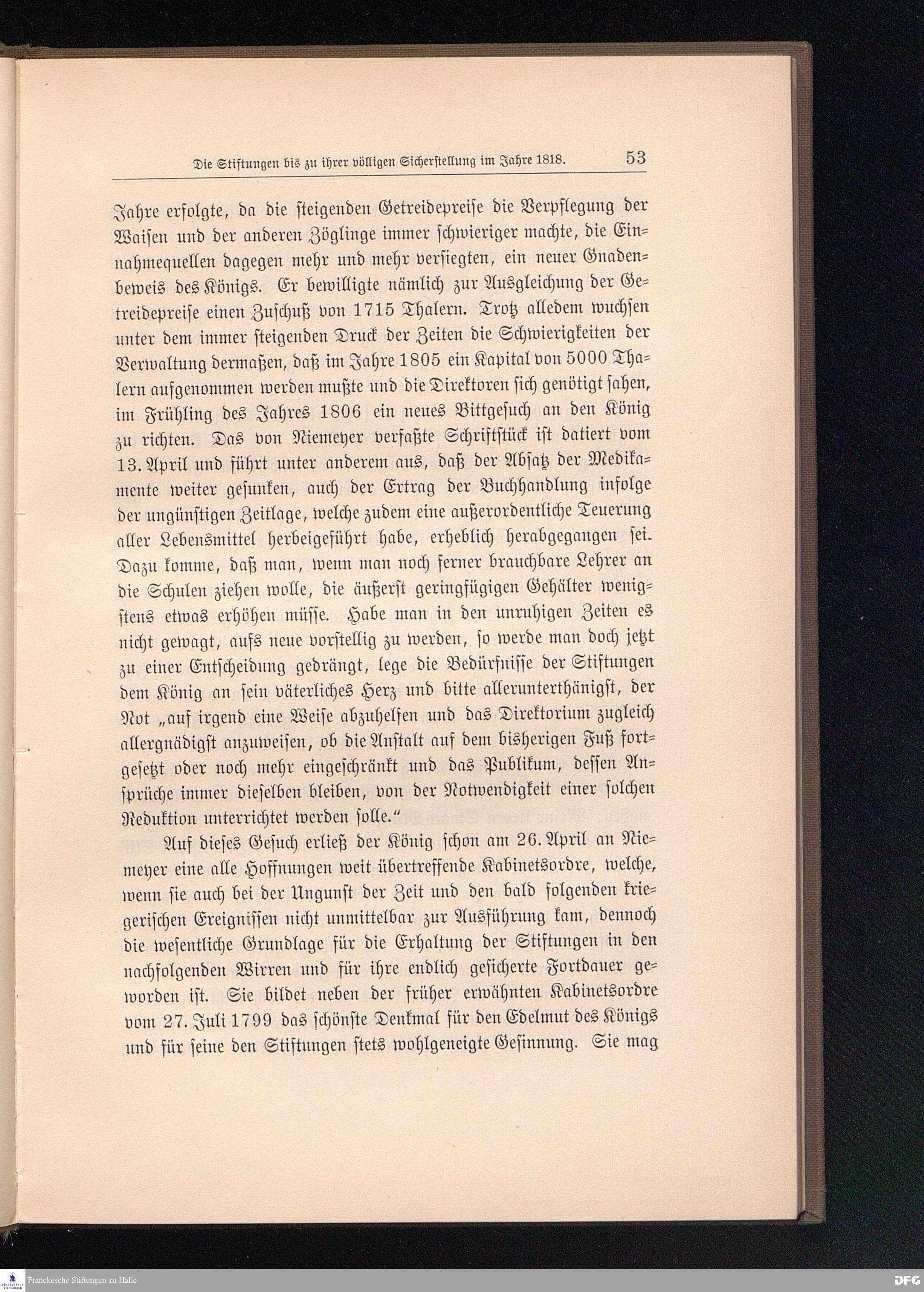 Die Franckeschen Stiftungen in ihrem zweiten Jahrhundert. Mit einem Bildnis A. H. Niemeyers und einem Plane der Stiftungen.