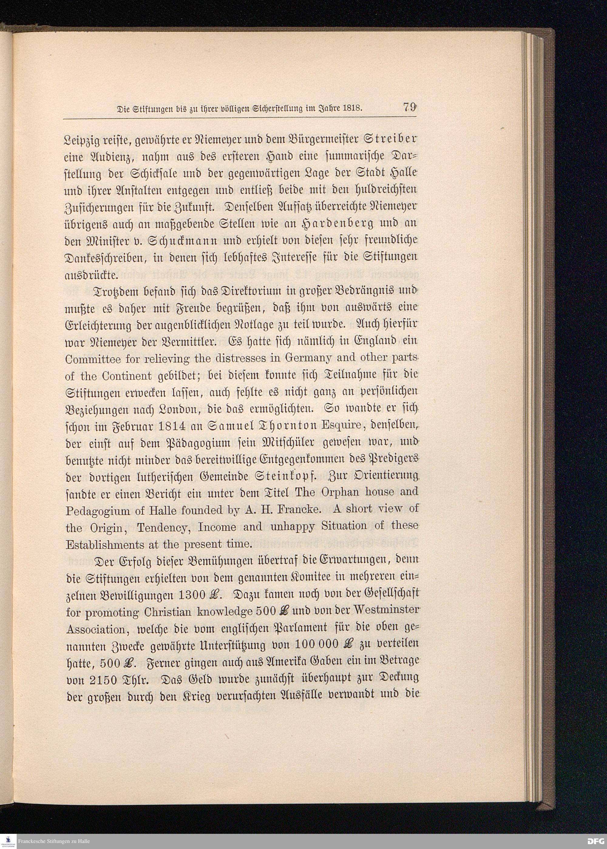 Die Franckeschen Stiftungen in ihrem zweiten Jahrhundert. Mit einem Bildnis A. H. Niemeyers und einem Plane der Stiftungen.