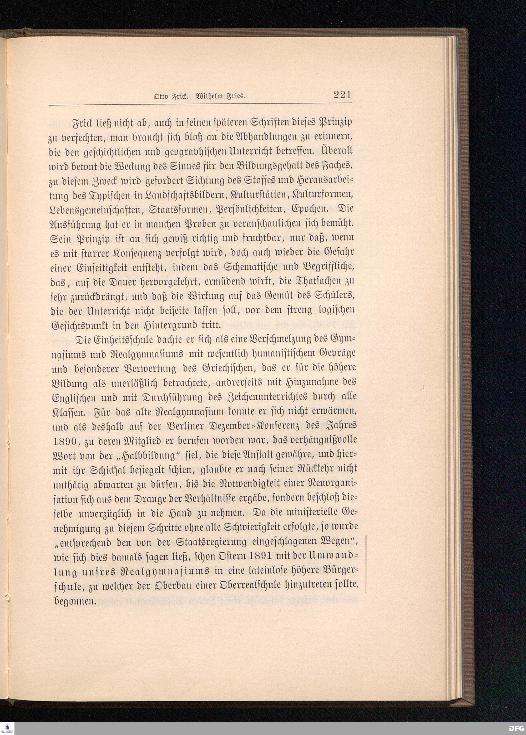 Sechstes Kapitel. Otto Frick. Wilhelm Fries.