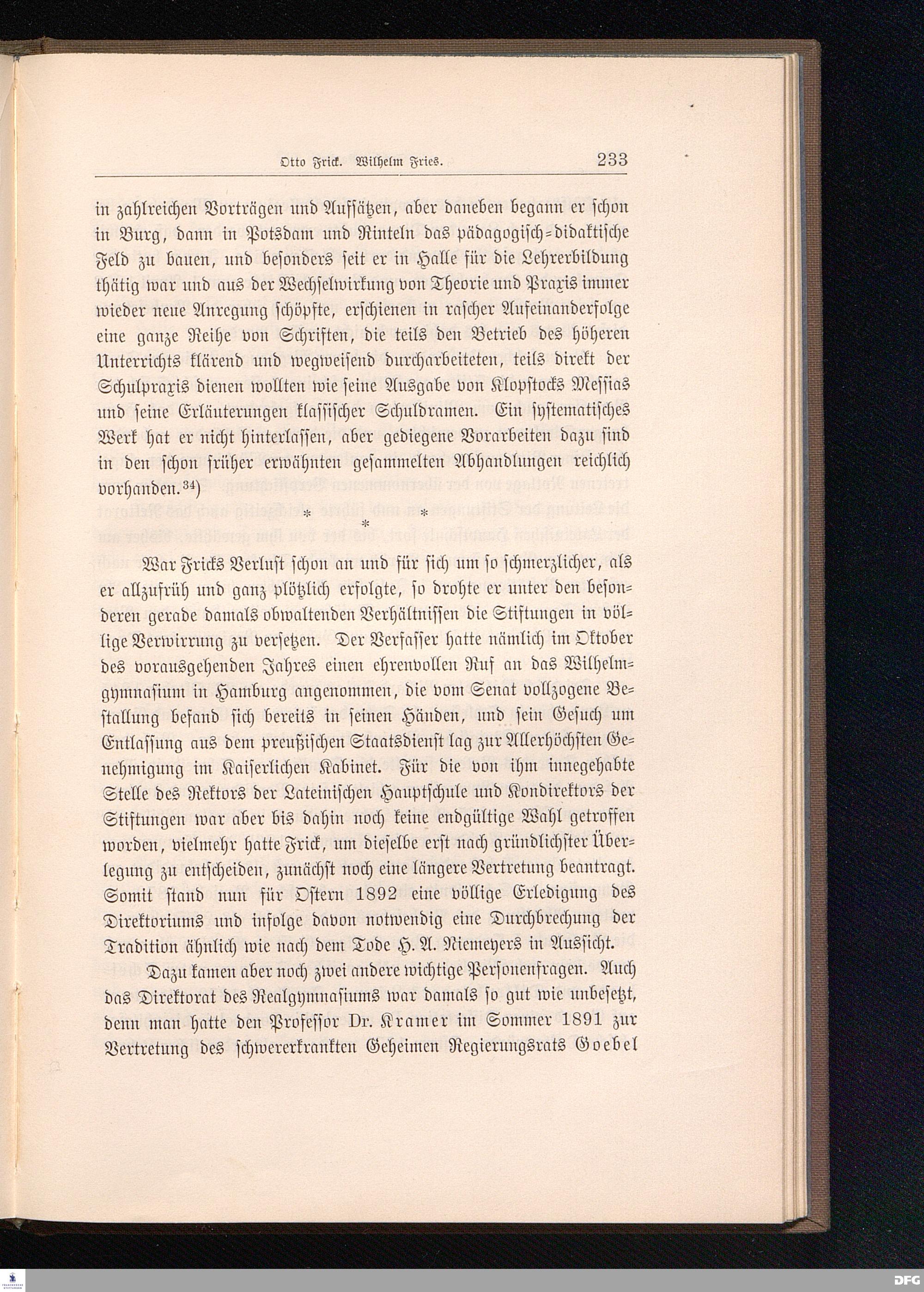 Sechstes Kapitel. Otto Frick. Wilhelm Fries.