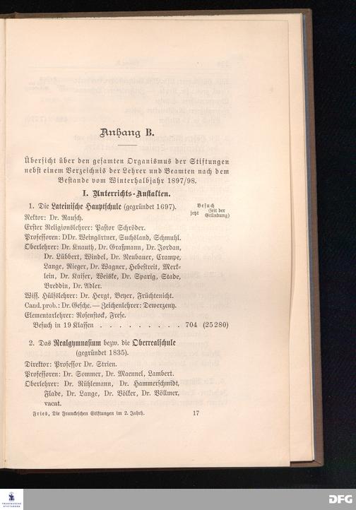 Die Franckeschen Stiftungen in ihrem zweiten Jahrhundert. Mit einem Bildnis A. H. Niemeyers und einem Plane der Stiftungen.