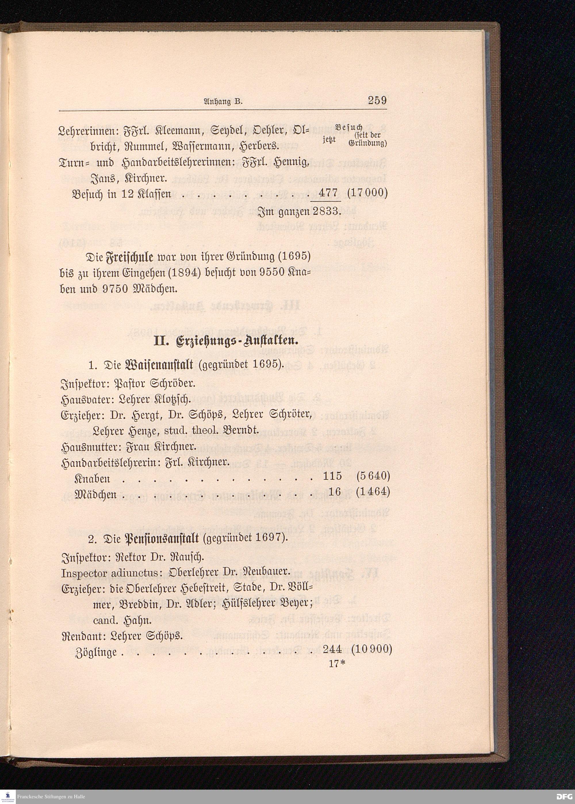 Die Franckeschen Stiftungen in ihrem zweiten Jahrhundert. Mit einem Bildnis A. H. Niemeyers und einem Plane der Stiftungen.