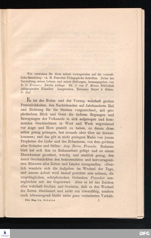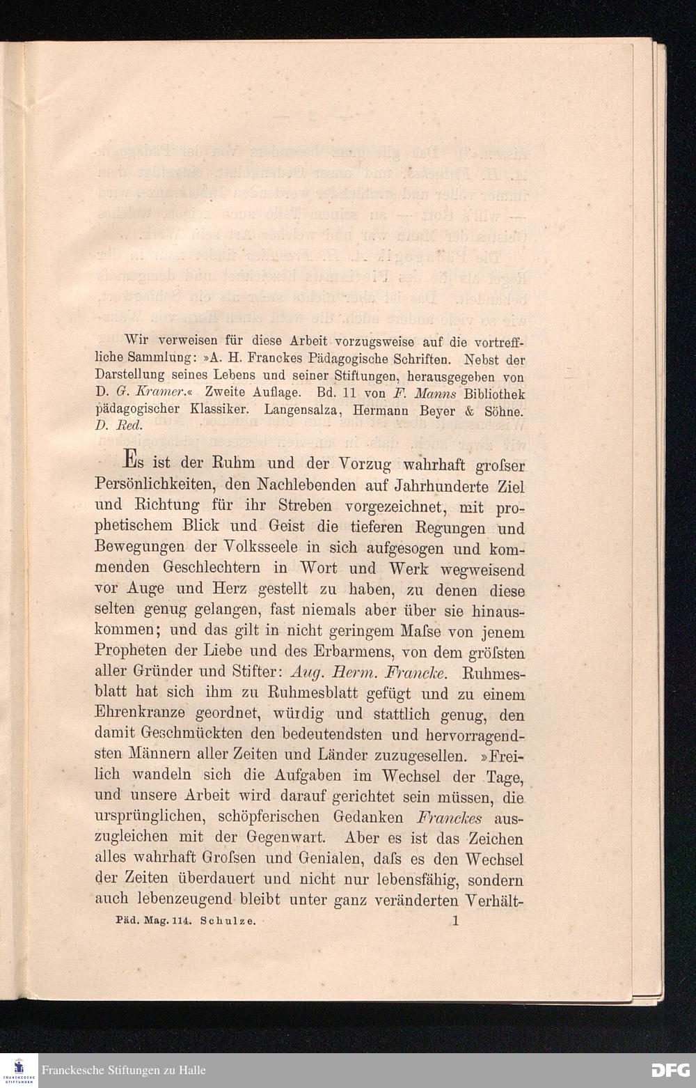 August Hermann Franckes Pädagogik. Ein Gedenkblatt zur zweihundertjährigen Jubelfeier der Franckeschen Stiftungen. 1698/1898.