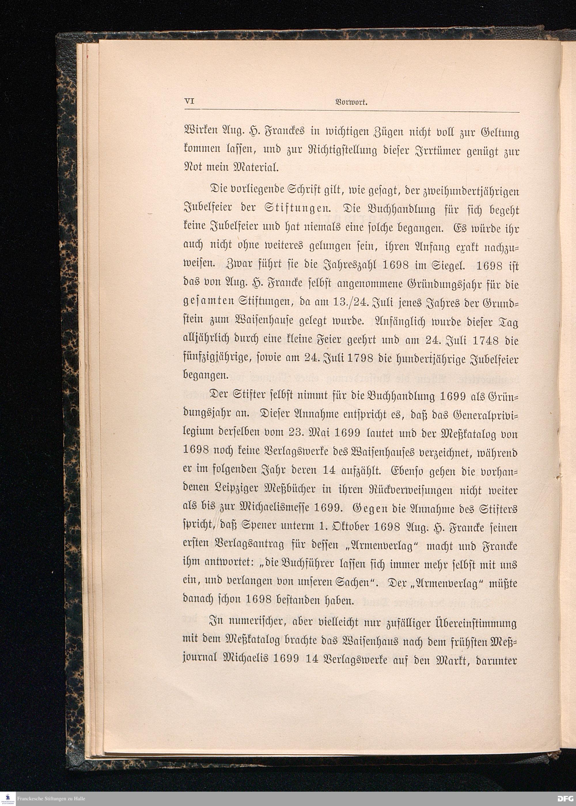 Zur Geschichte der Buchhandlung des Waisenhauses und der Cansteinschen Bibelanstalt in Halle a.S. Zur zweihundertjährigen Jubelfeier der Franckeschen Stiftungen. 1698 - 1898.