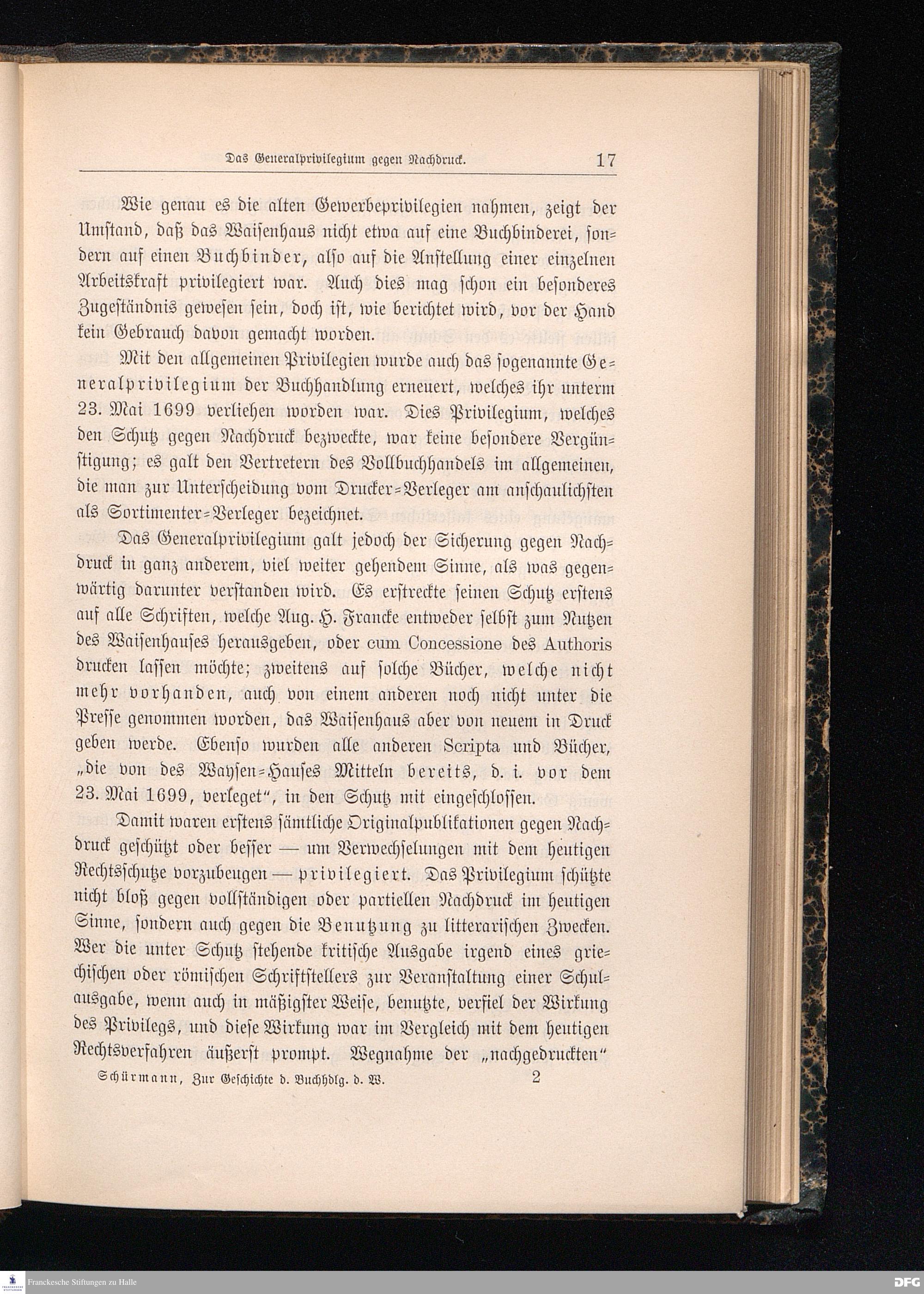 Zur Geschichte der Buchhandlung des Waisenhauses und der Cansteinschen Bibelanstalt in Halle a.S. Zur zweihundertjährigen Jubelfeier der Franckeschen Stiftungen. 1698 - 1898.