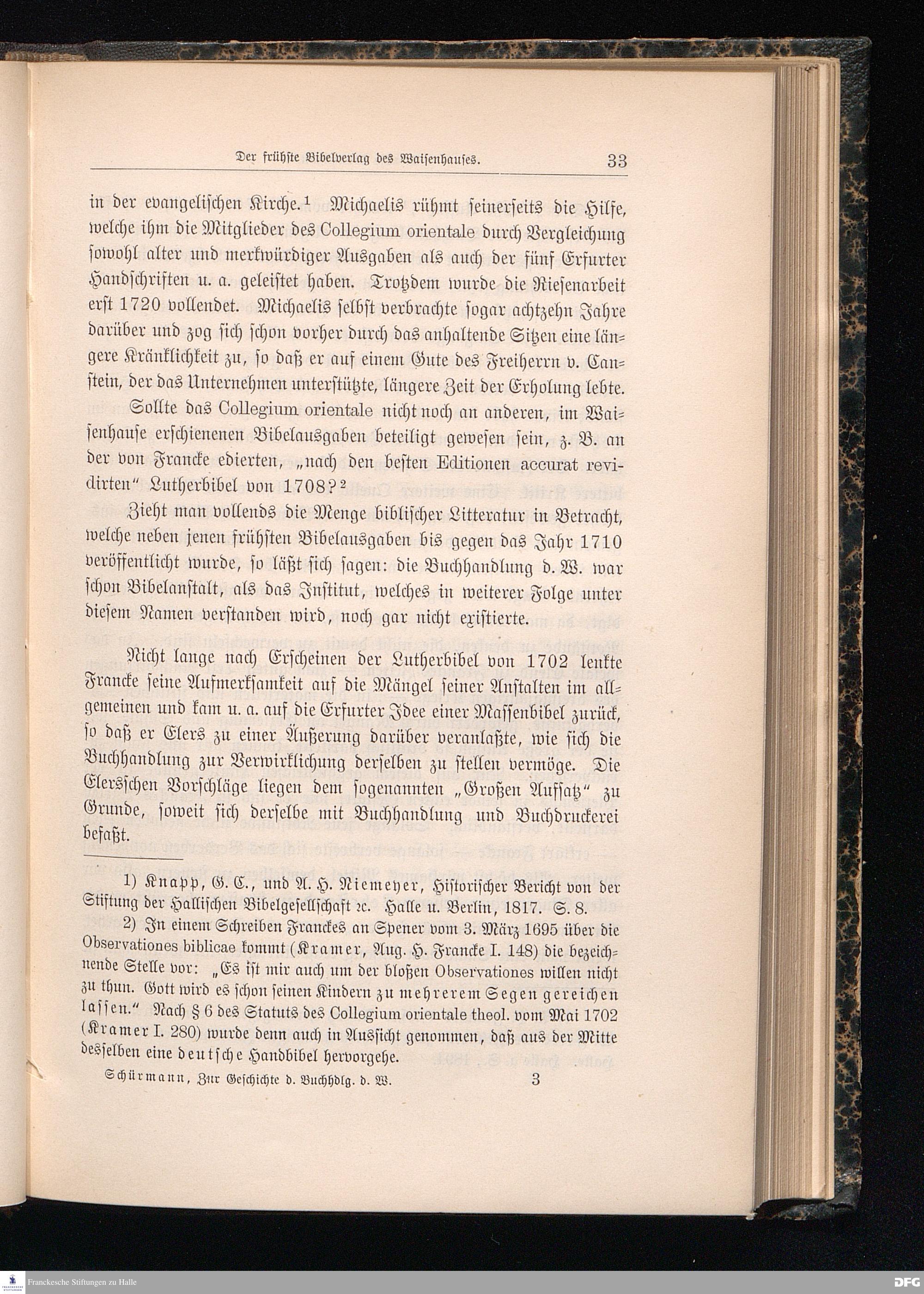 Zur Geschichte der Buchhandlung des Waisenhauses und der Cansteinschen Bibelanstalt in Halle a.S. Zur zweihundertjährigen Jubelfeier der Franckeschen Stiftungen. 1698 - 1898.