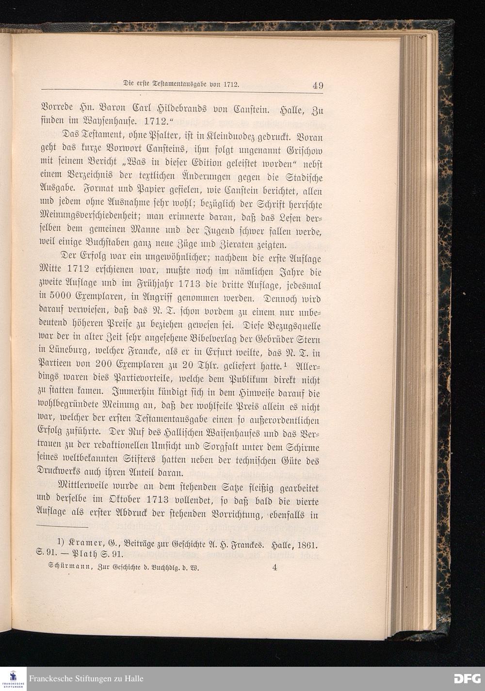 Zur Geschichte der Buchhandlung des Waisenhauses und der Cansteinschen Bibelanstalt in Halle a.S. Zur zweihundertjährigen Jubelfeier der Franckeschen Stiftungen. 1698 - 1898.