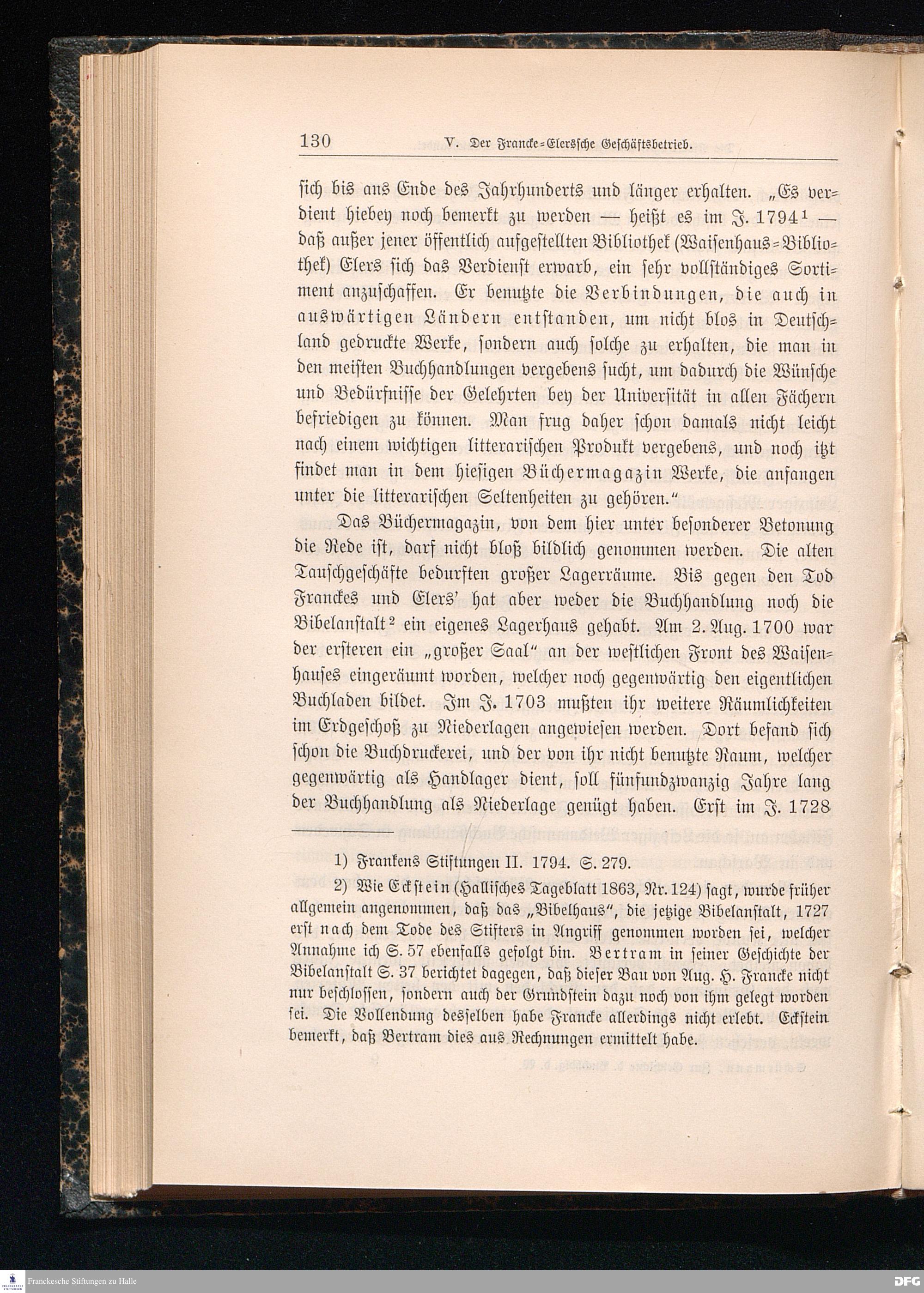 Zur Geschichte der Buchhandlung des Waisenhauses und der Cansteinschen Bibelanstalt in Halle a.S. Zur zweihundertjährigen Jubelfeier der Franckeschen Stiftungen. 1698 - 1898.