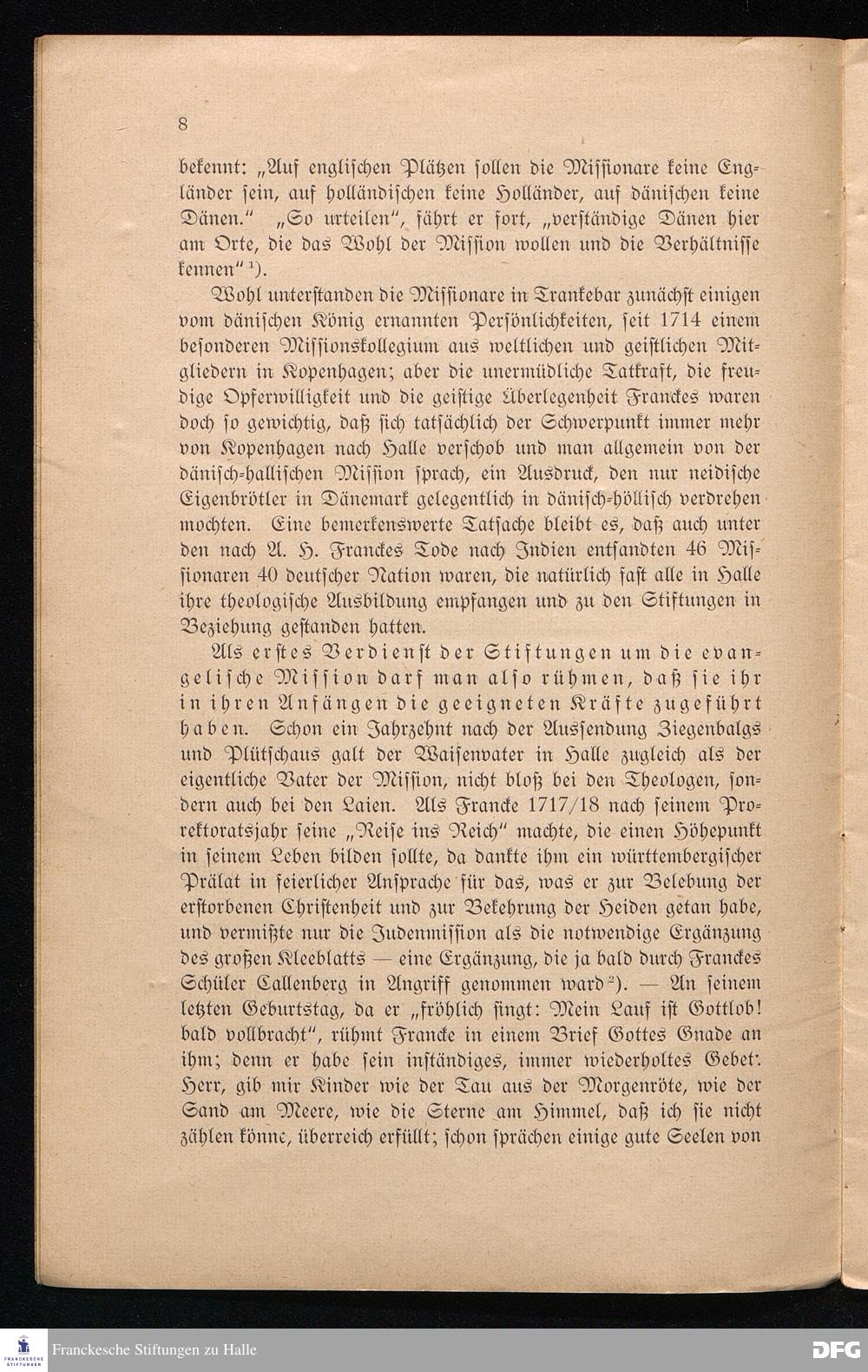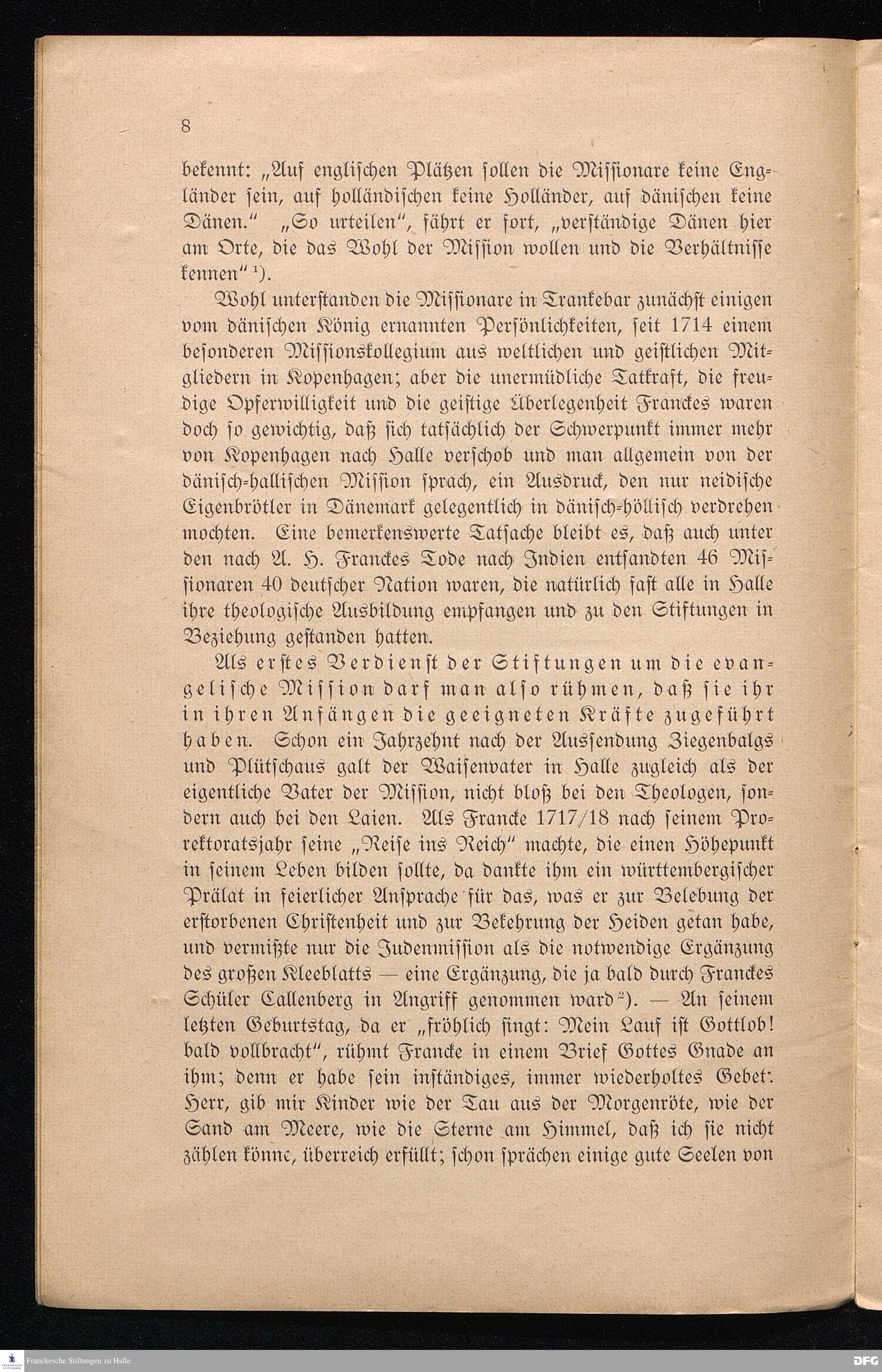 Die Franckeschen Stiftungen und die Mission. Der Lehrer-Missionskonferenz in der Provinz Sachsen zu ihrem 25jährigen Bestehen gewidmet.