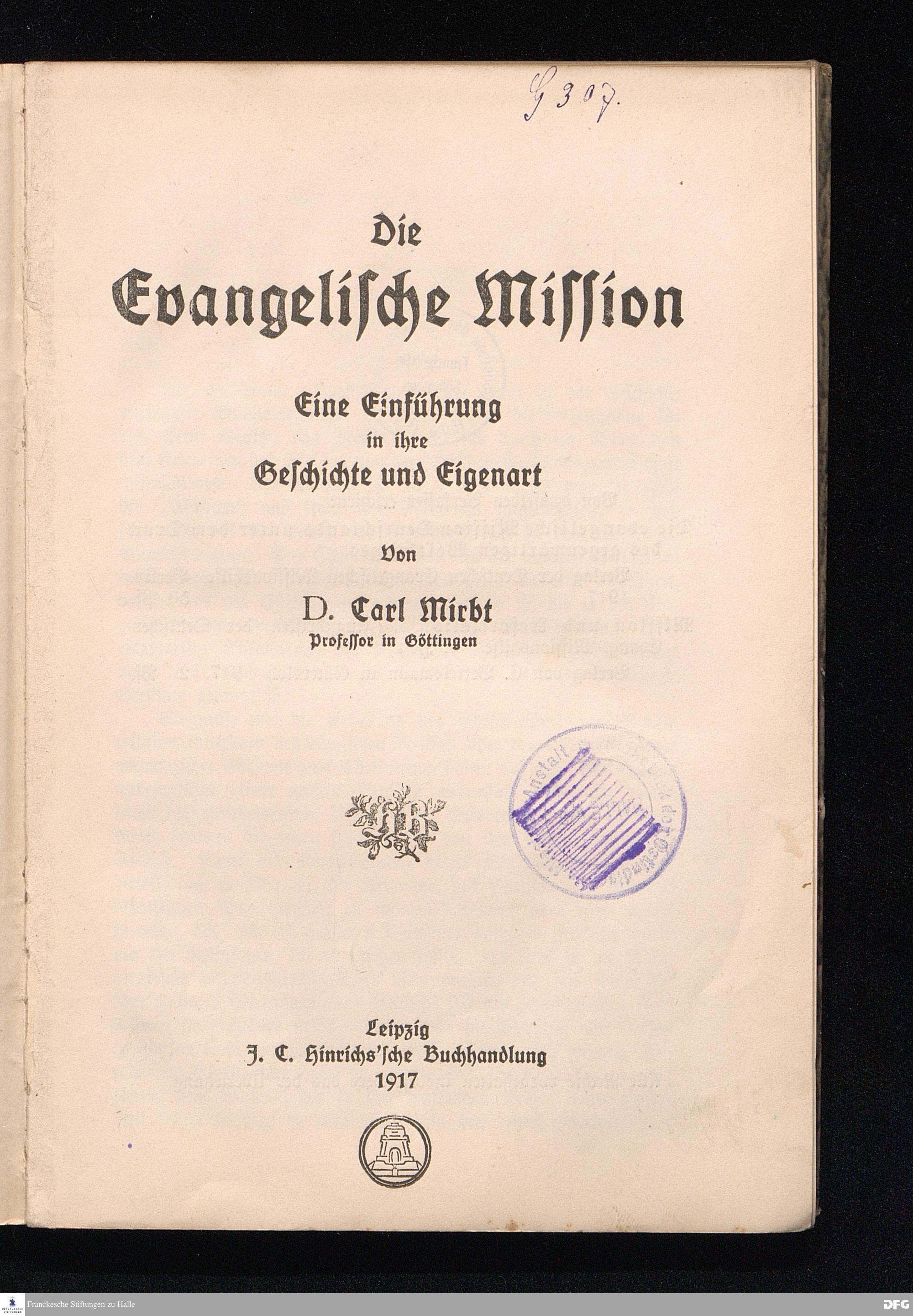 Die Begründung der deutschen Mission durch den Pietismus.