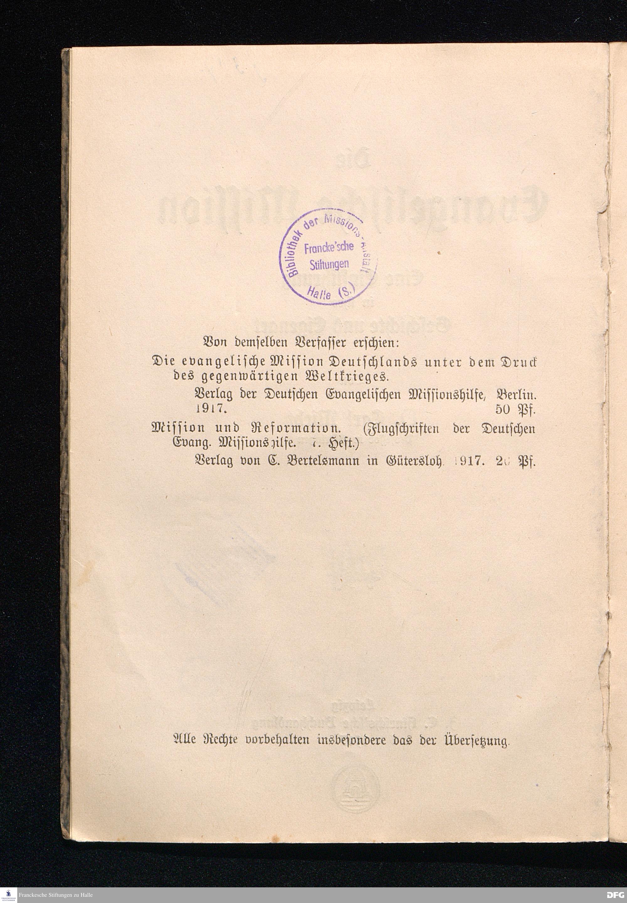 Die Entwicklung des Missionswesens in Deutschland.