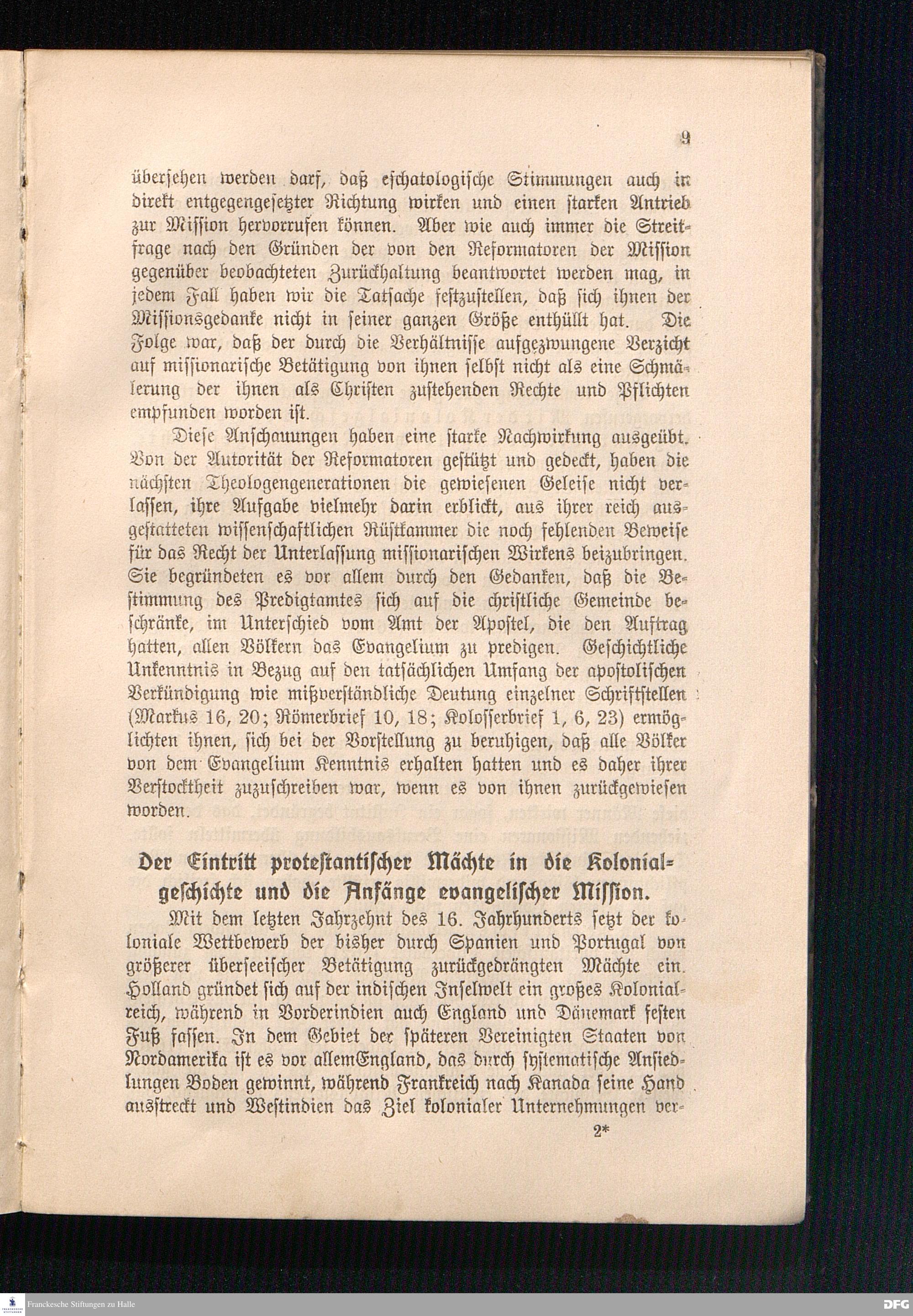 Die Begründung der deutschen Mission durch den Pietismus.