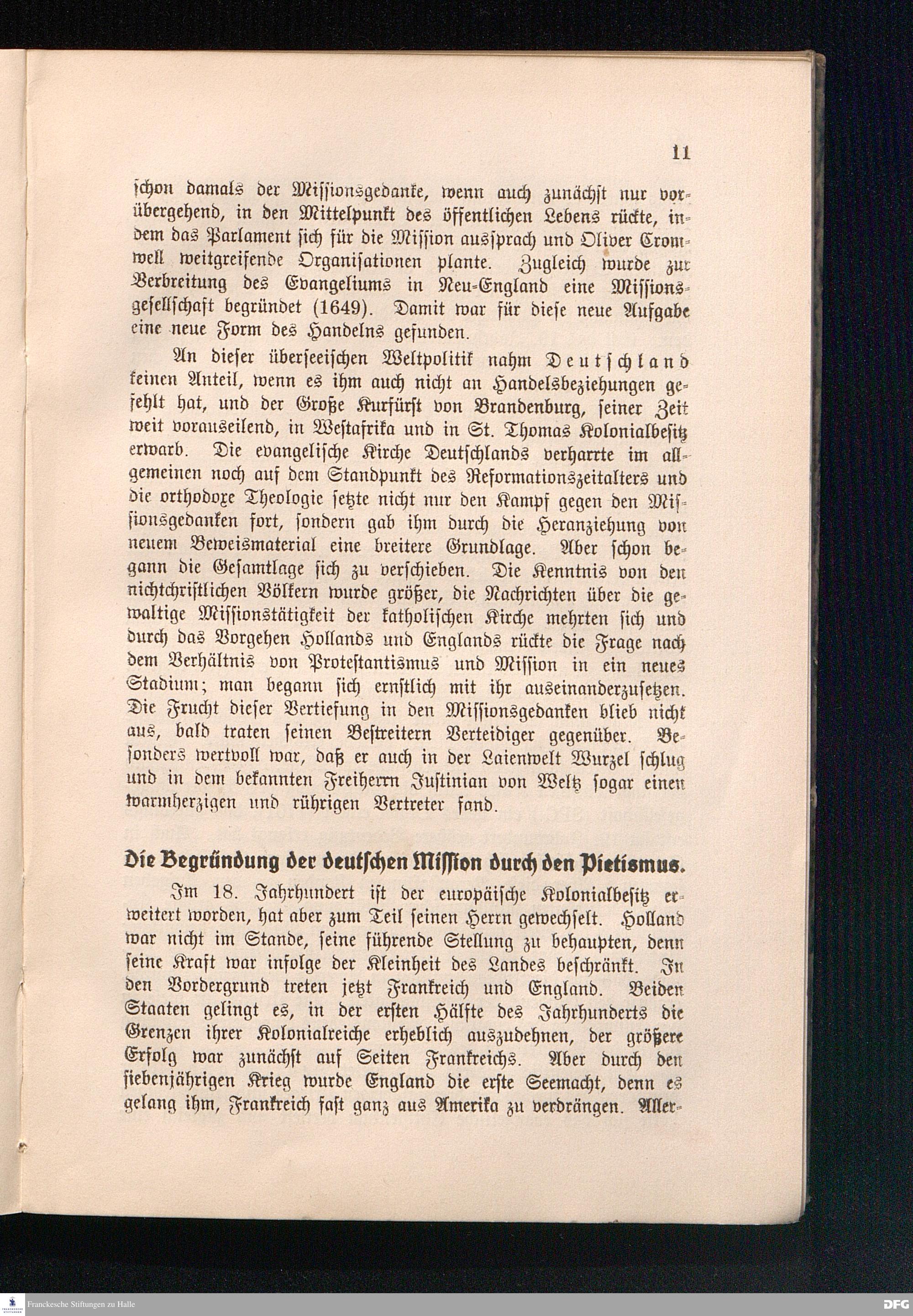 Die Begründung der deutschen Mission durch den Pietismus.