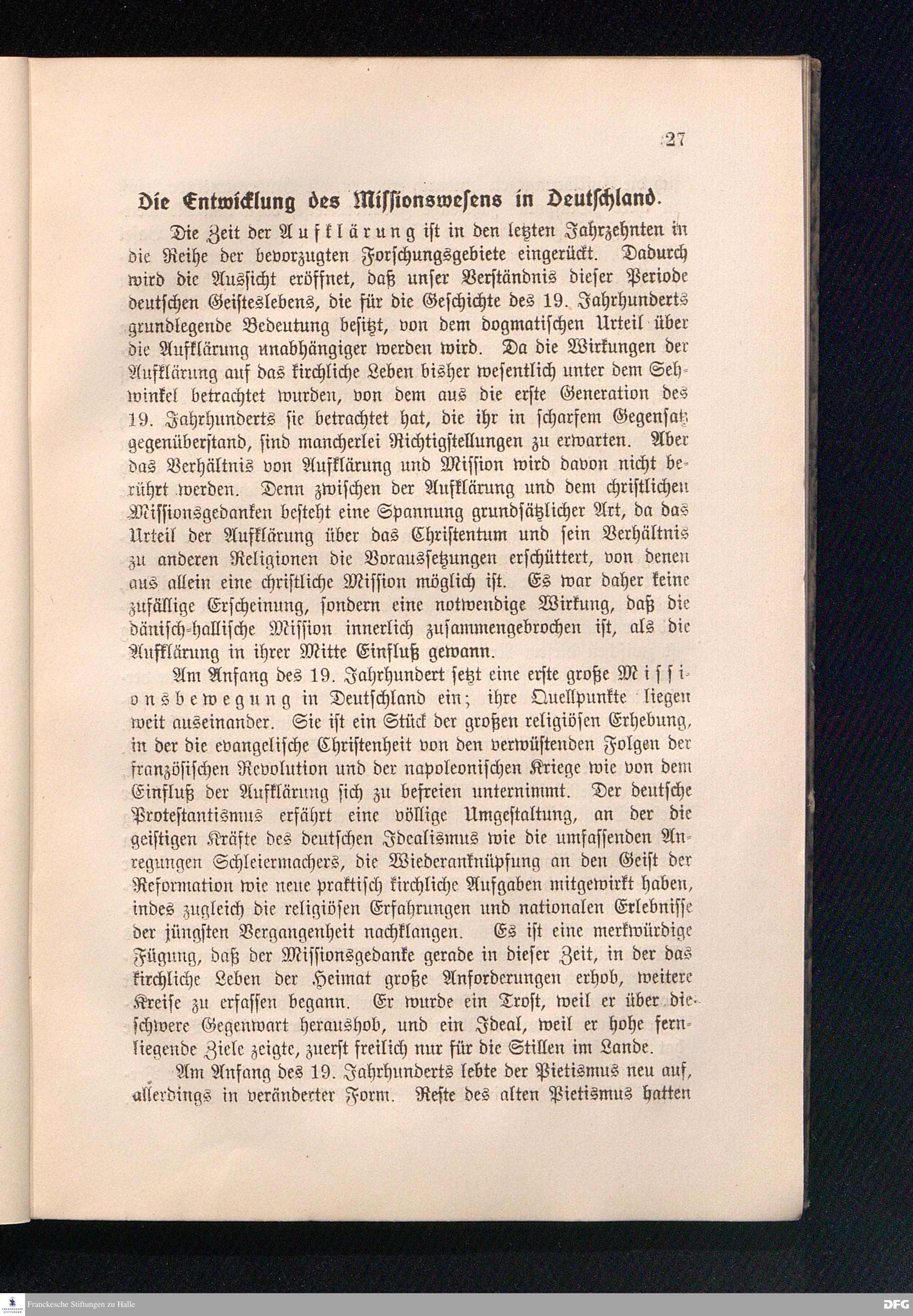 Die Begründung der deutschen Mission durch den Pietismus.