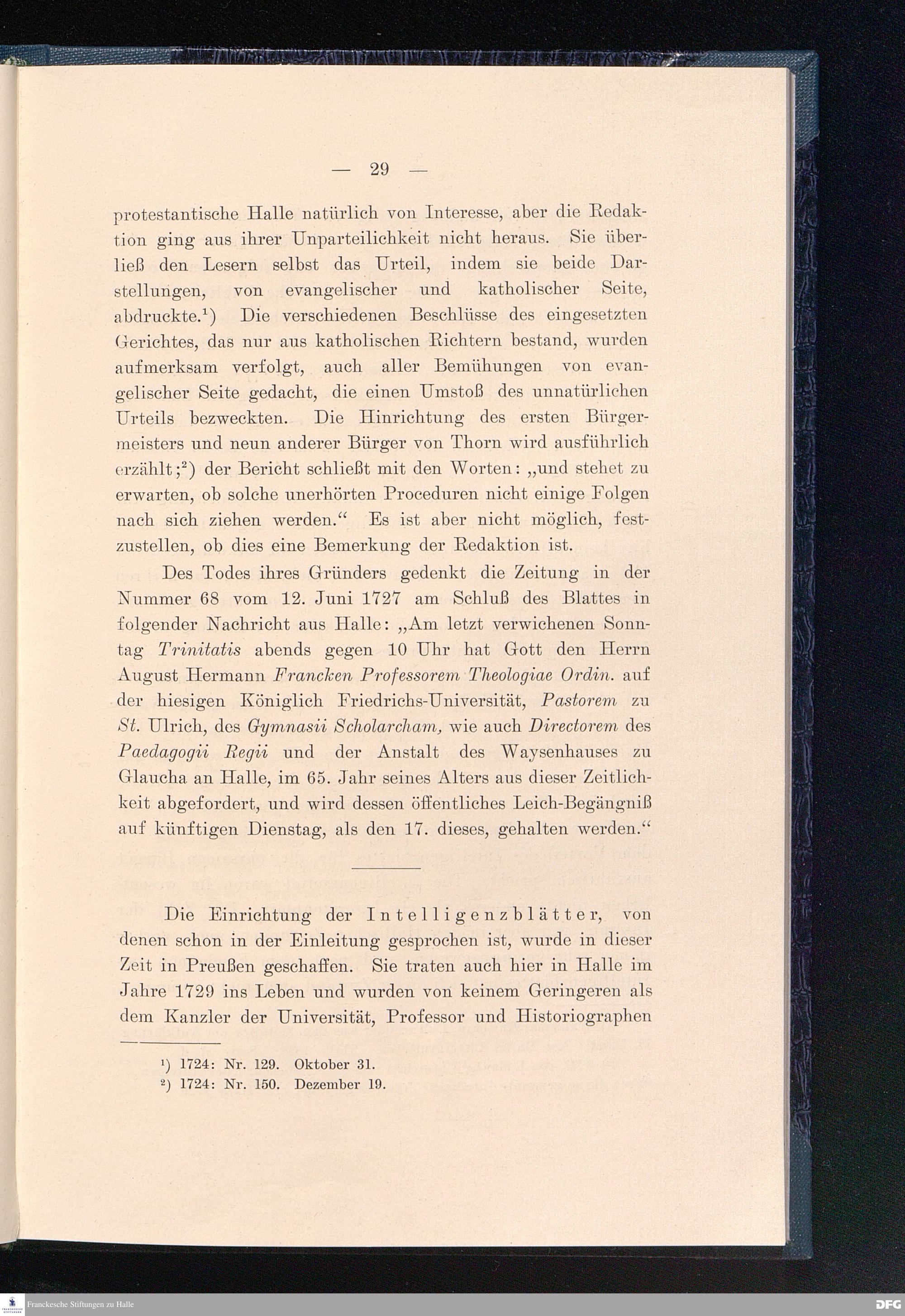 Die Geschichte der Halleschen Zeitung, Landeszeitung für die Provinz Sachsen, für Anhalt und Thüringen. Eine Denkschrift aus Anlaß des 200jährigen Bestehens der Zeitung am 25. Juni 1908.