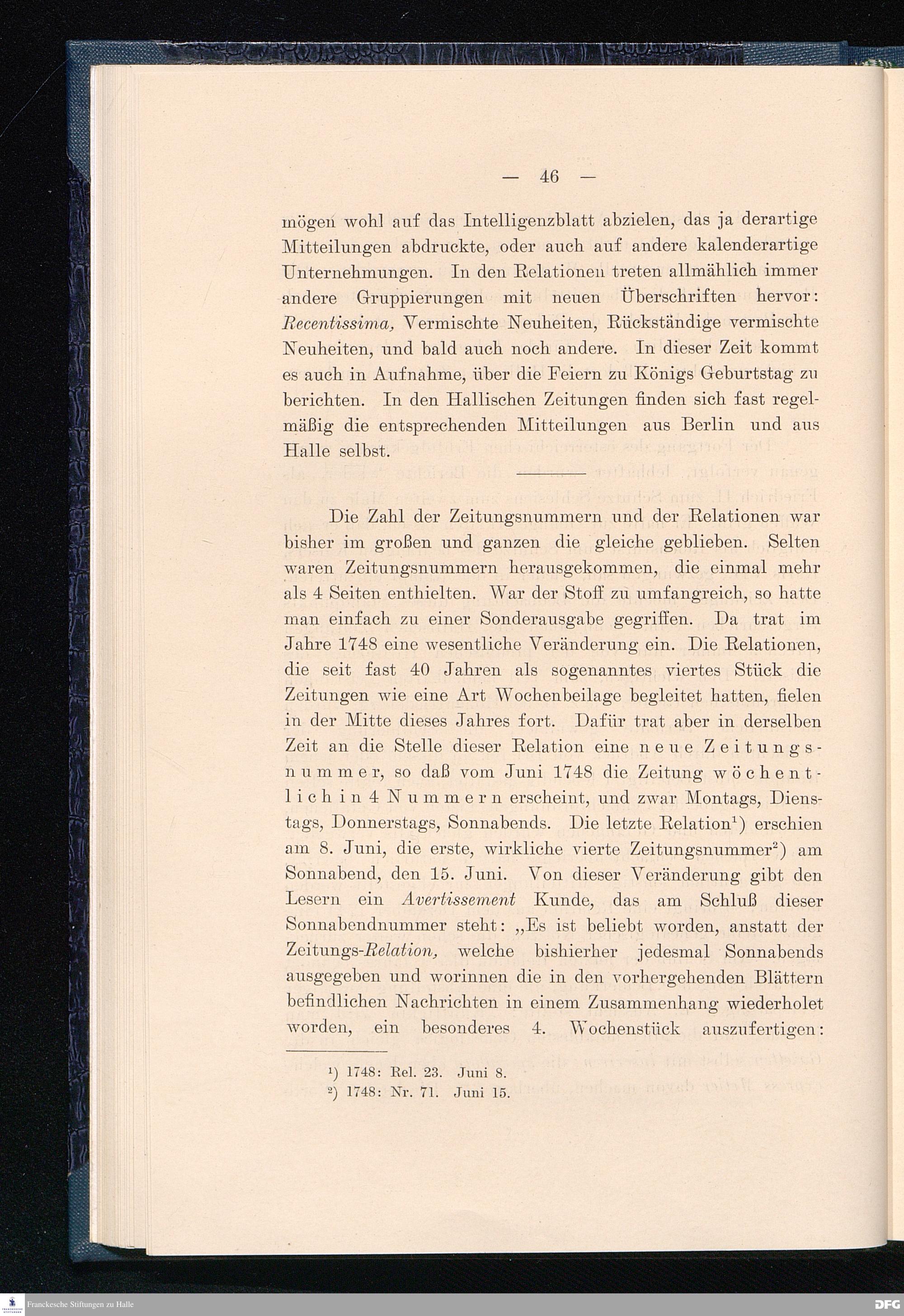Die Geschichte der Halleschen Zeitung, Landeszeitung für die Provinz Sachsen, für Anhalt und Thüringen. Eine Denkschrift aus Anlaß des 200jährigen Bestehens der Zeitung am 25. Juni 1908.