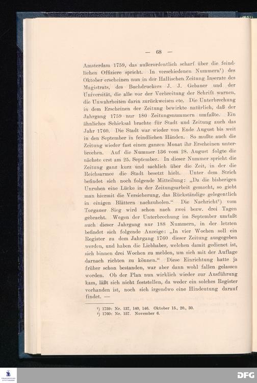 Die Geschichte der Halleschen Zeitung, Landeszeitung für die Provinz Sachsen, für Anhalt und Thüringen. Eine Denkschrift aus Anlaß des 200jährigen Bestehens der Zeitung am 25. Juni 1908.