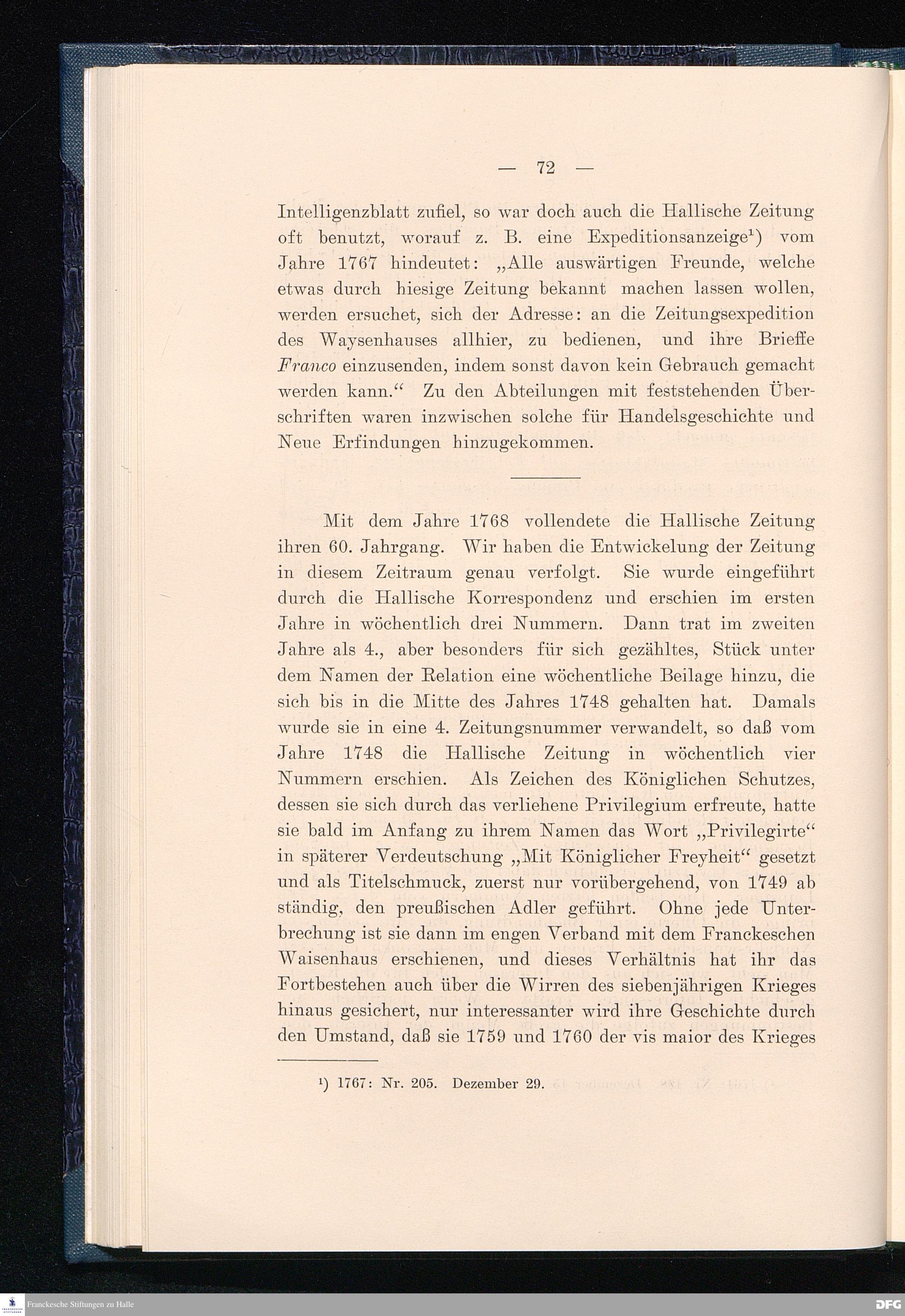 Die Geschichte der Halleschen Zeitung, Landeszeitung für die Provinz Sachsen, für Anhalt und Thüringen. Eine Denkschrift aus Anlaß des 200jährigen Bestehens der Zeitung am 25. Juni 1908.