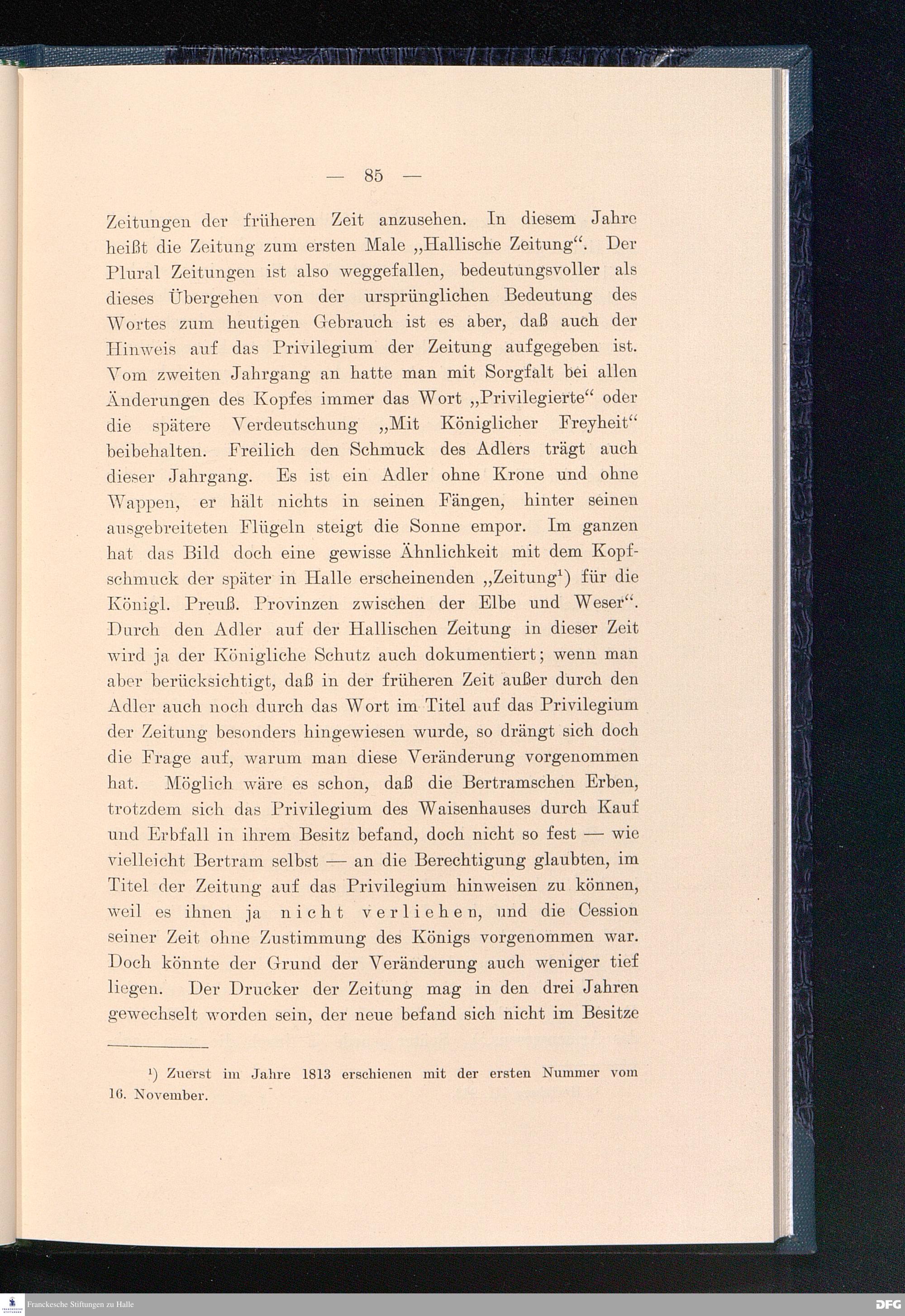 Die Geschichte der Halleschen Zeitung, Landeszeitung für die Provinz Sachsen, für Anhalt und Thüringen. Eine Denkschrift aus Anlaß des 200jährigen Bestehens der Zeitung am 25. Juni 1908.