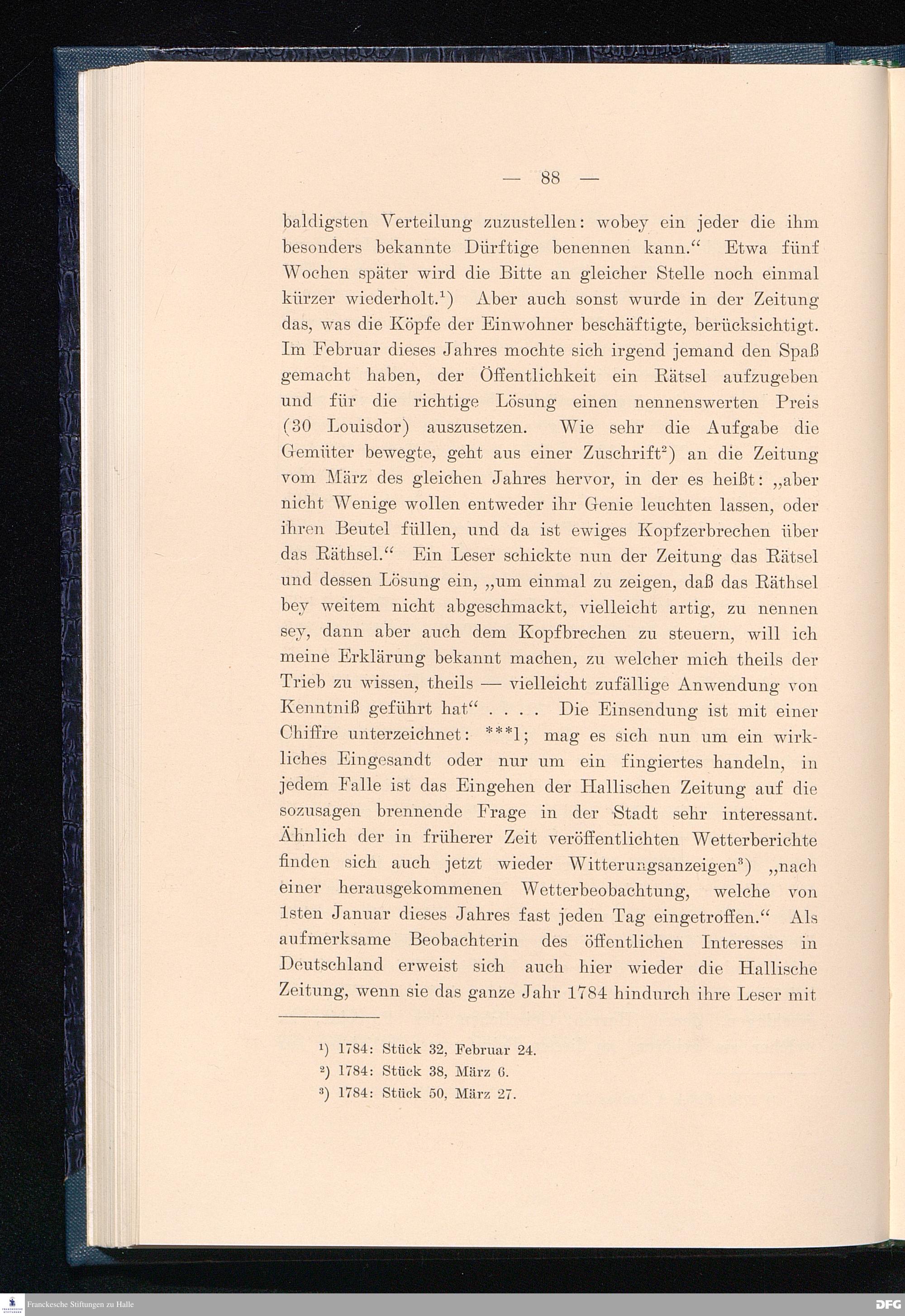 Die Geschichte der Halleschen Zeitung, Landeszeitung für die Provinz Sachsen, für Anhalt und Thüringen. Eine Denkschrift aus Anlaß des 200jährigen Bestehens der Zeitung am 25. Juni 1908.