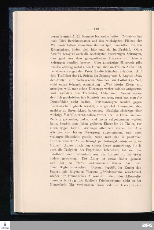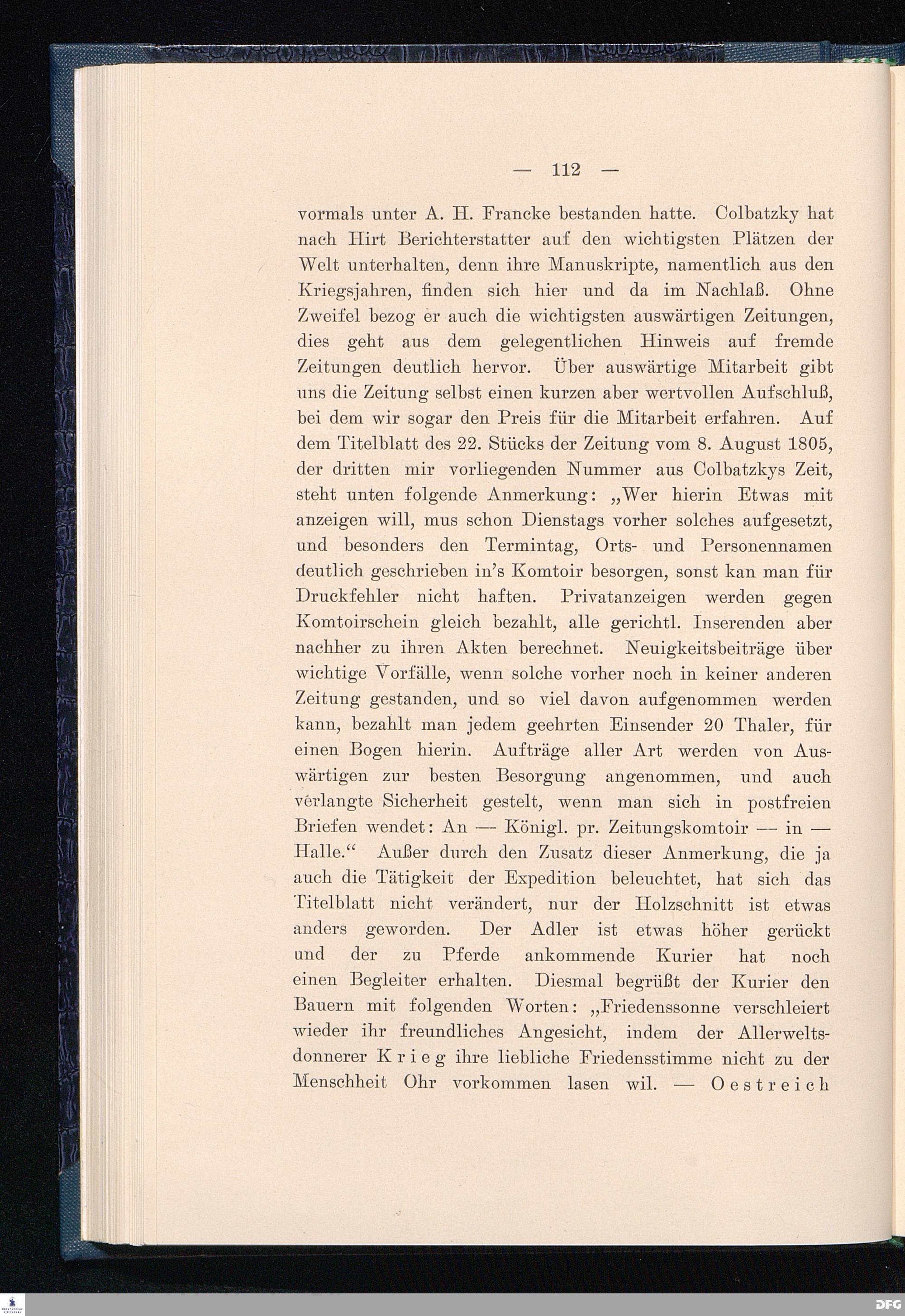 Die Geschichte der Halleschen Zeitung, Landeszeitung für die Provinz Sachsen, für Anhalt und Thüringen. Eine Denkschrift aus Anlaß des 200jährigen Bestehens der Zeitung am 25. Juni 1908.