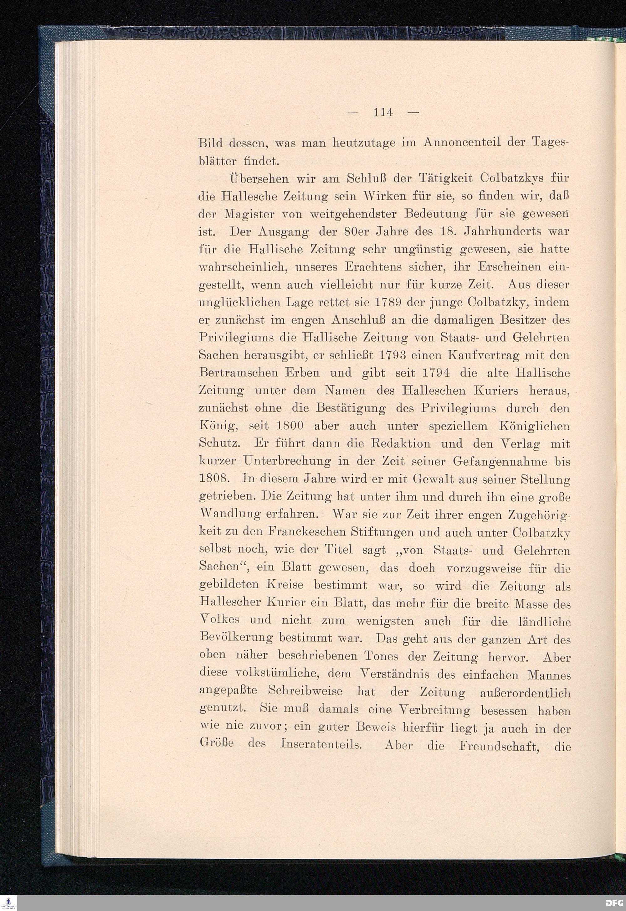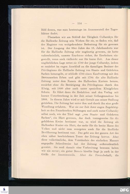 Die Geschichte der Halleschen Zeitung, Landeszeitung für die Provinz Sachsen, für Anhalt und Thüringen. Eine Denkschrift aus Anlaß des 200jährigen Bestehens der Zeitung am 25. Juni 1908.