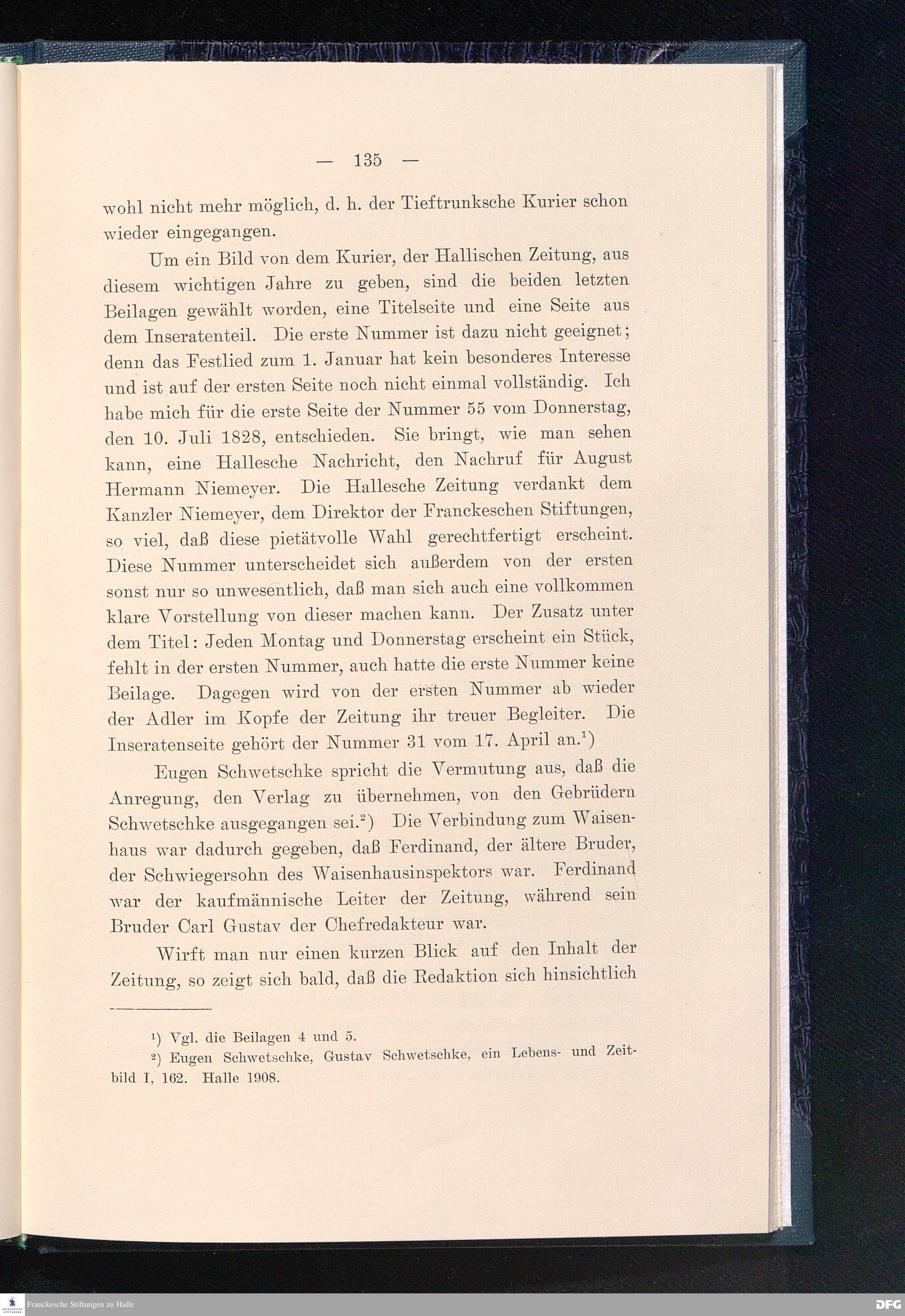 Die Geschichte der Halleschen Zeitung, Landeszeitung für die Provinz Sachsen, für Anhalt und Thüringen. Eine Denkschrift aus Anlaß des 200jährigen Bestehens der Zeitung am 25. Juni 1908.