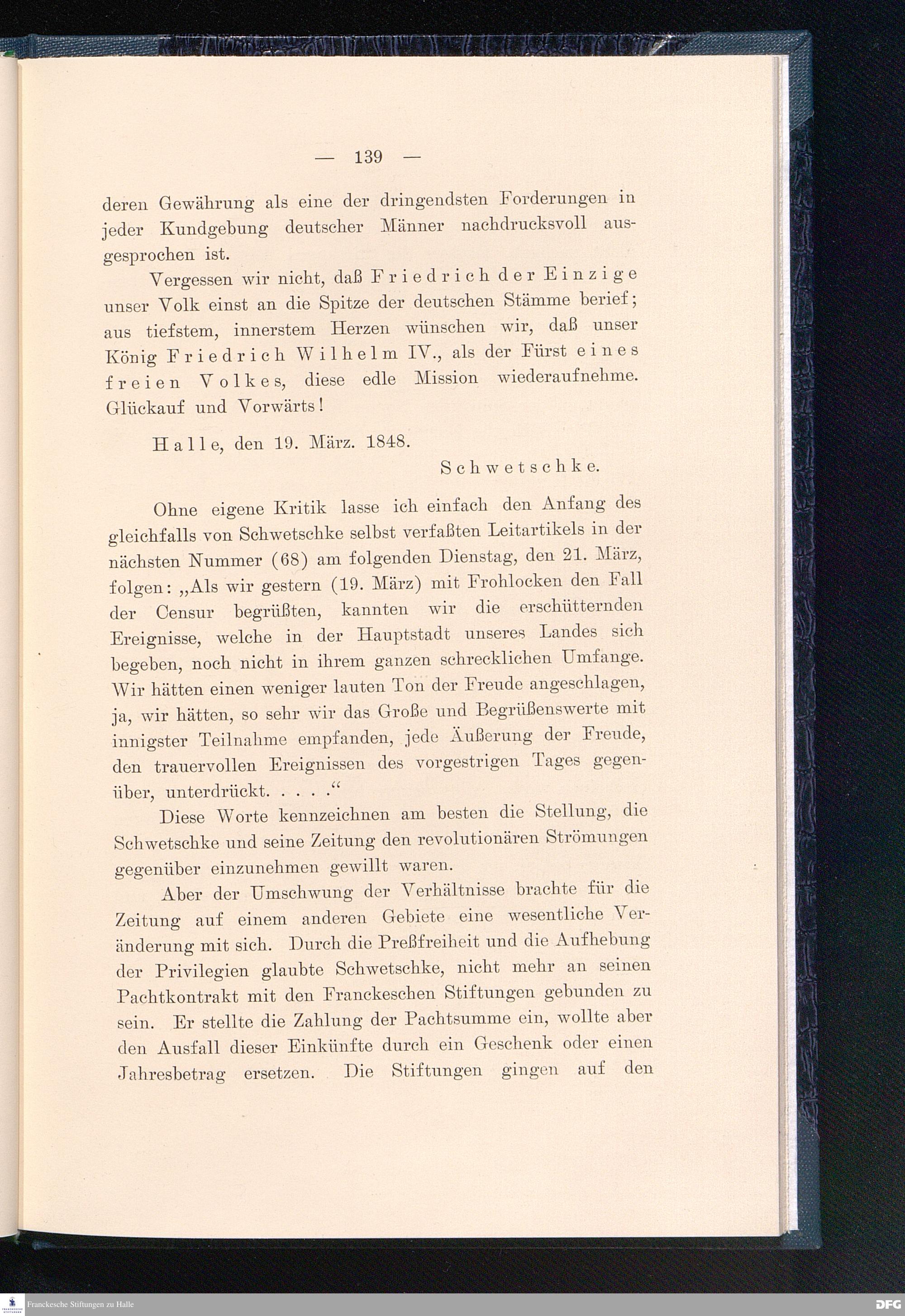 Die Geschichte der Halleschen Zeitung, Landeszeitung für die Provinz Sachsen, für Anhalt und Thüringen. Eine Denkschrift aus Anlaß des 200jährigen Bestehens der Zeitung am 25. Juni 1908.