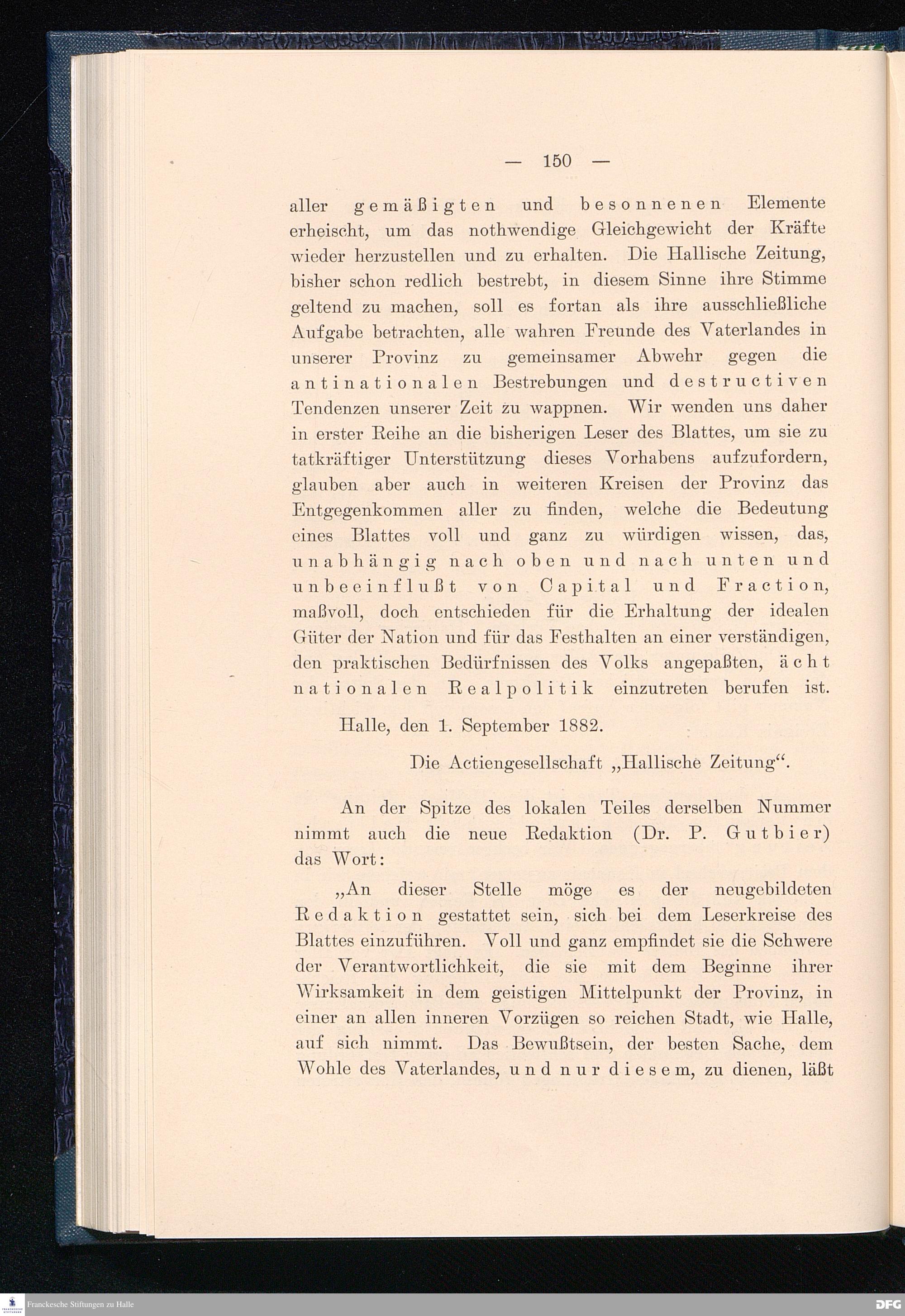 Die Geschichte der Halleschen Zeitung, Landeszeitung für die Provinz Sachsen, für Anhalt und Thüringen. Eine Denkschrift aus Anlaß des 200jährigen Bestehens der Zeitung am 25. Juni 1908.