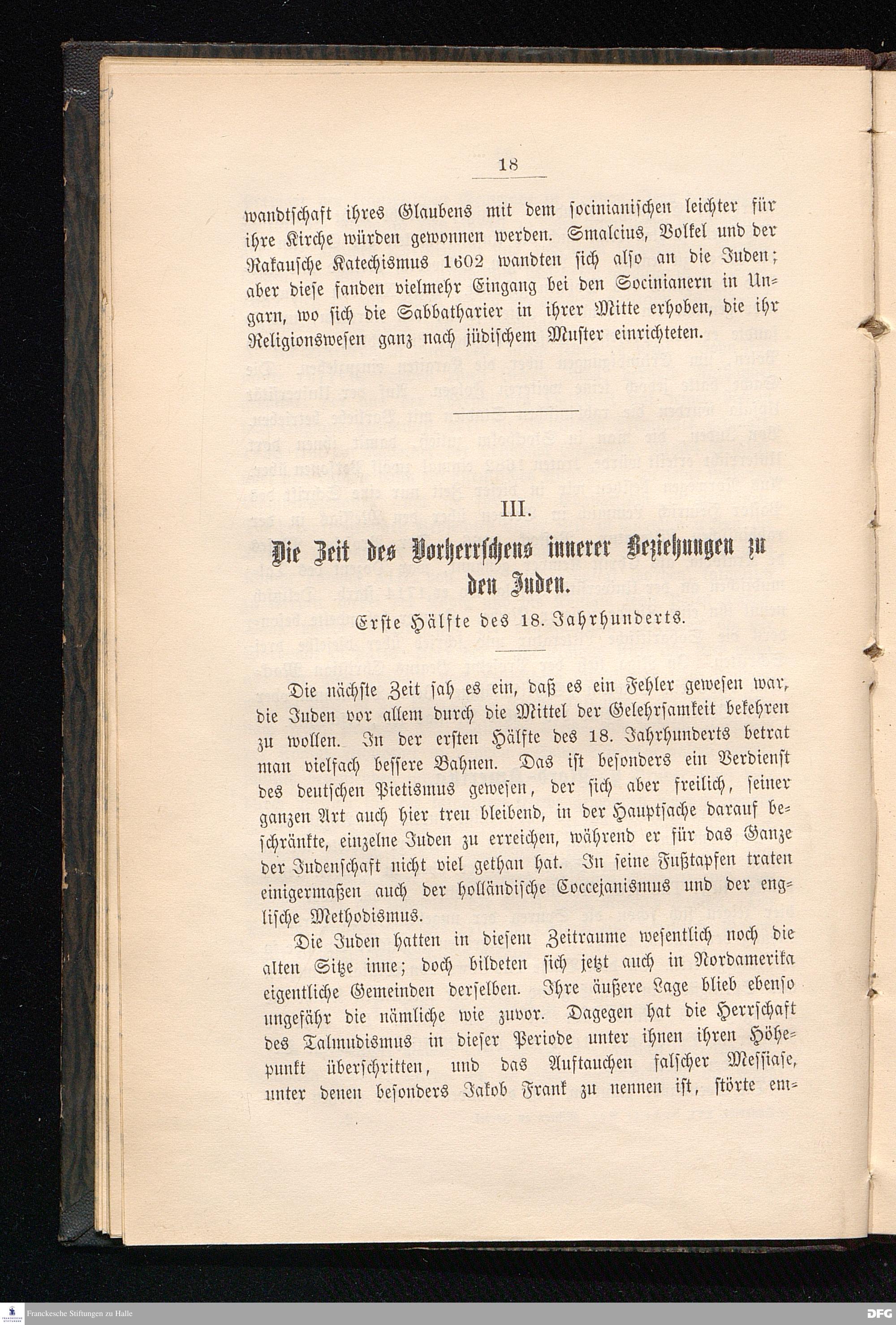 III. Die Zeit des Vorherrschens innerer Beziehungen zu den Juden. Erste Hälfte des 18. Jahrhunderts.