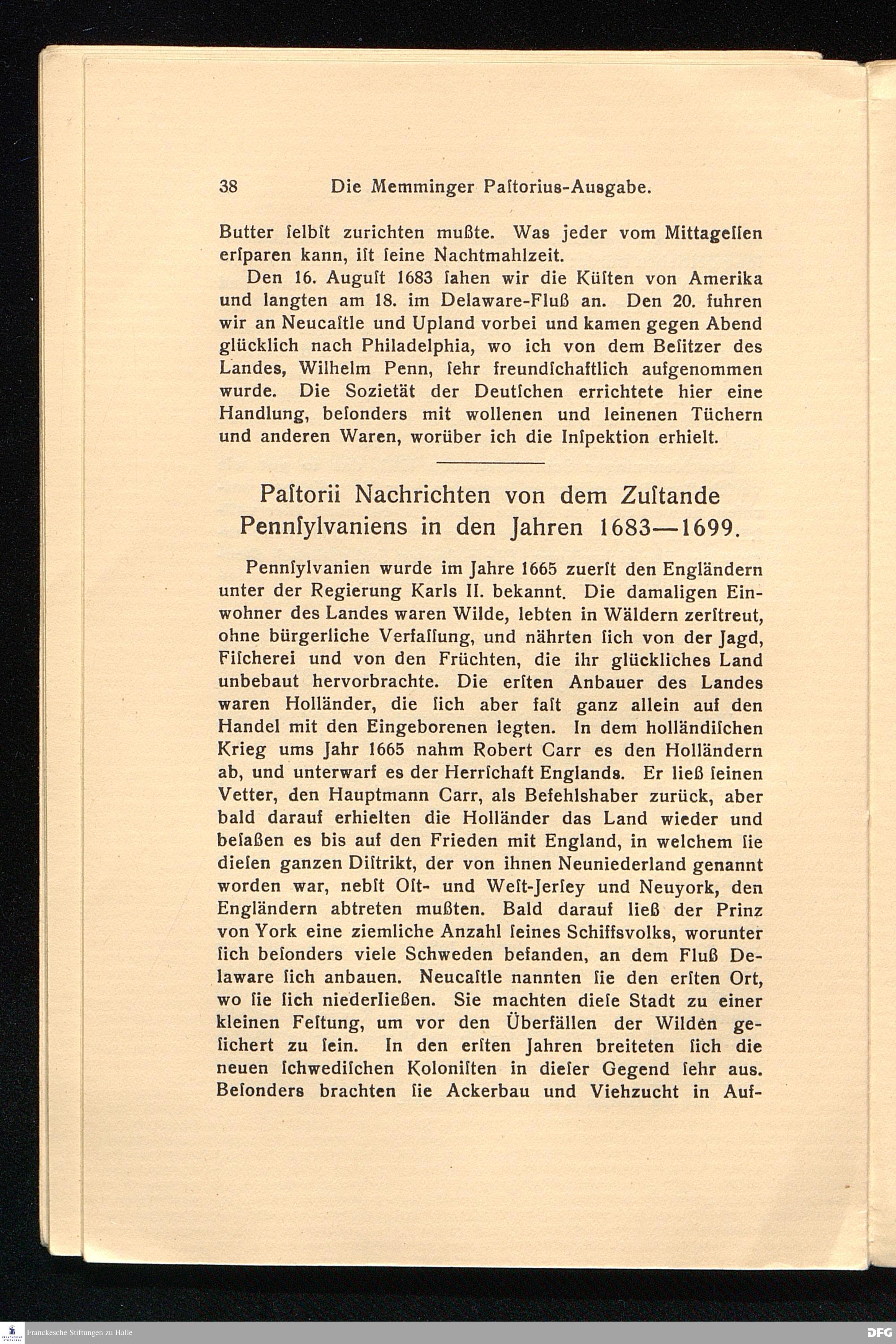 I. Pennsylvanien, geschildert von Penn.