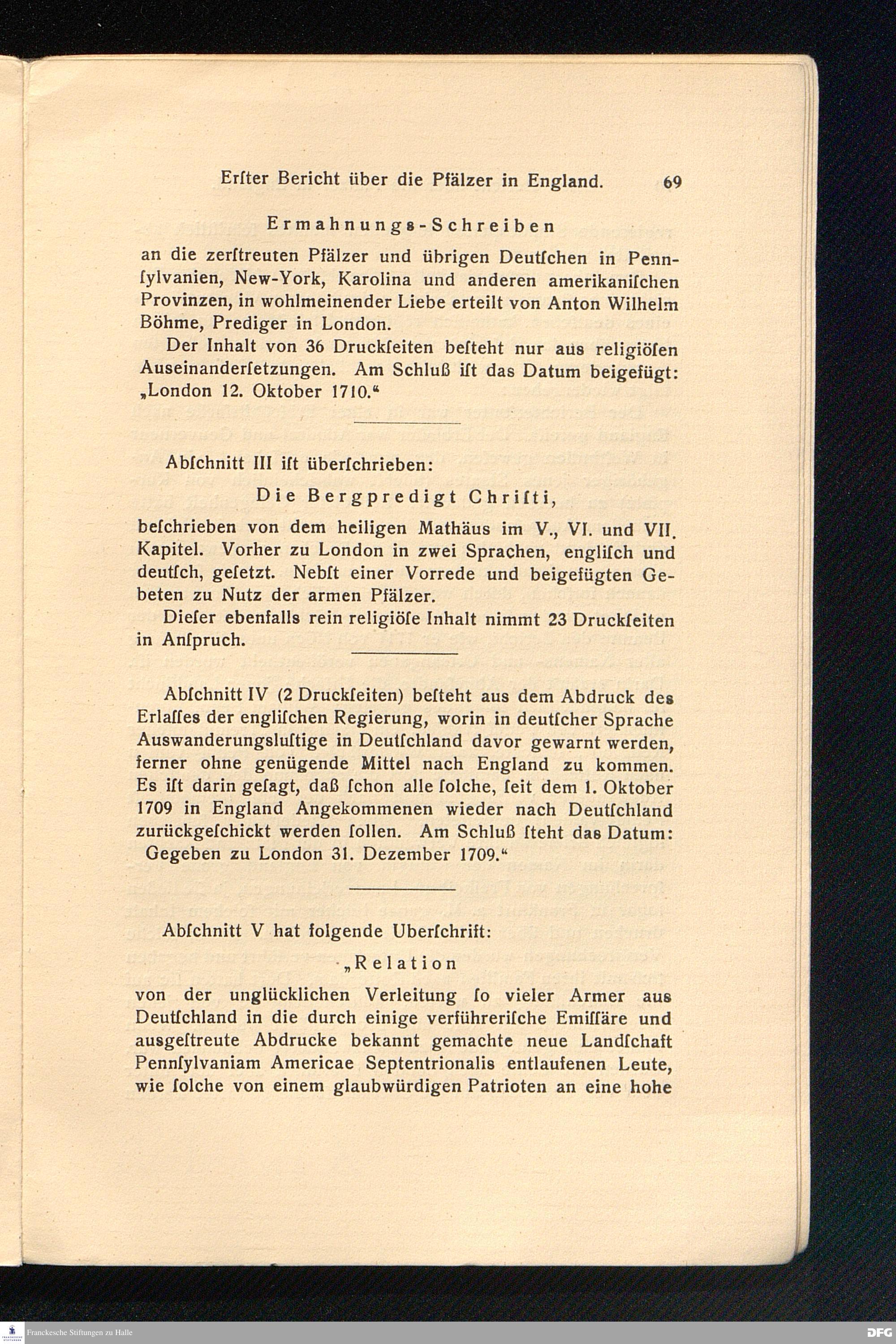 III. Die Pfälzer 1709 und 1710 in England.