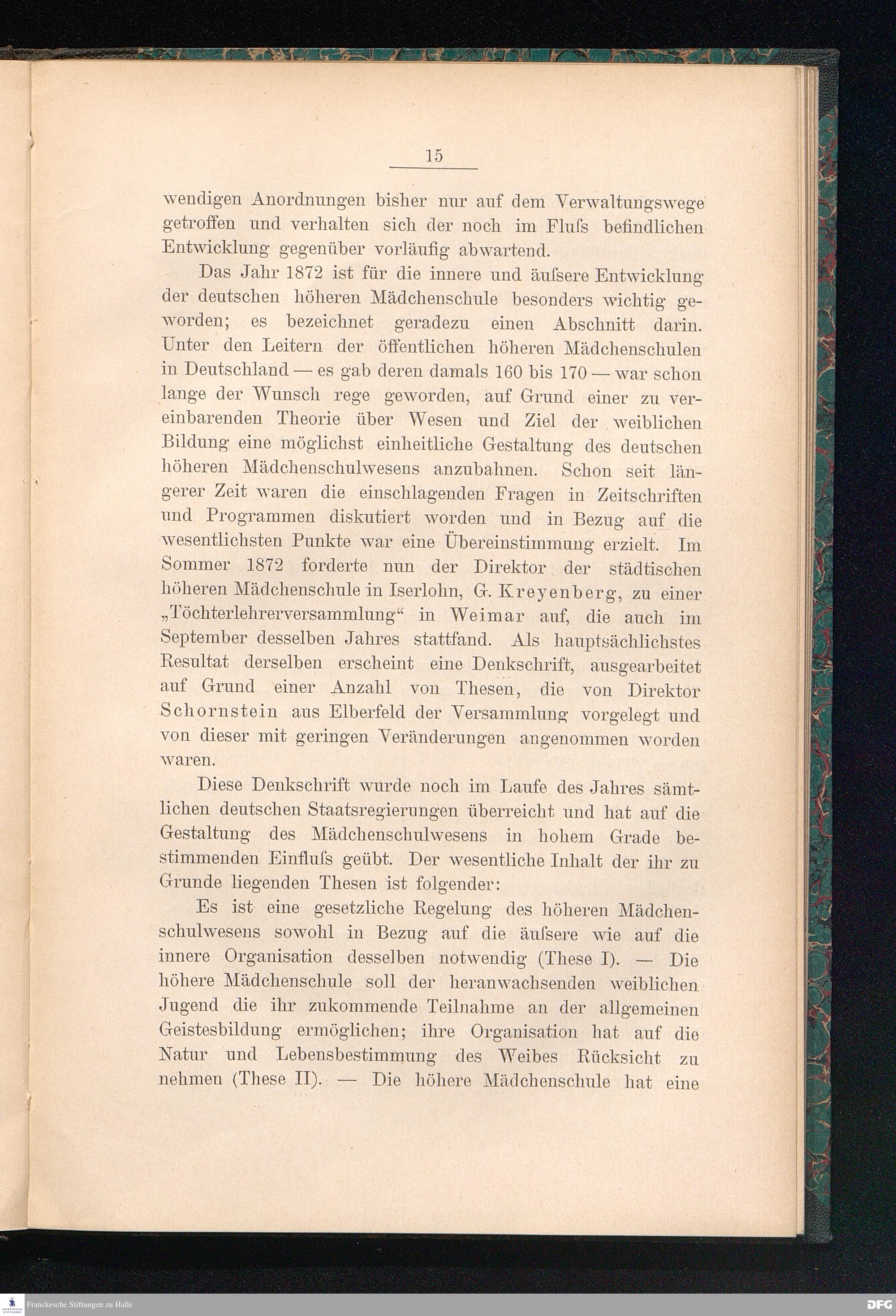 Entwickelung und Stand des höheren Mädchenschulwesens in Deutschland.