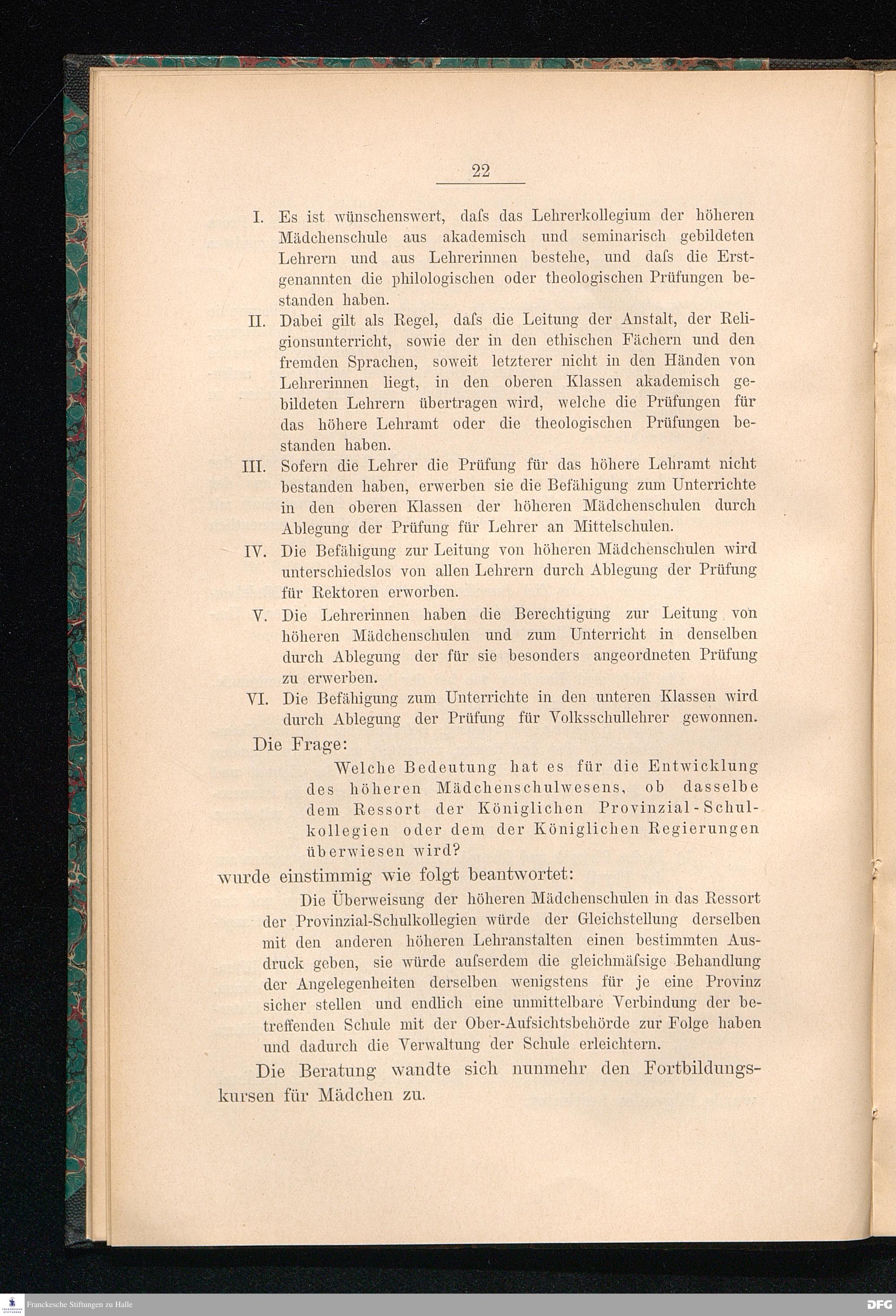 Entwickelung und Stand des höheren Mädchenschulwesens in Deutschland.